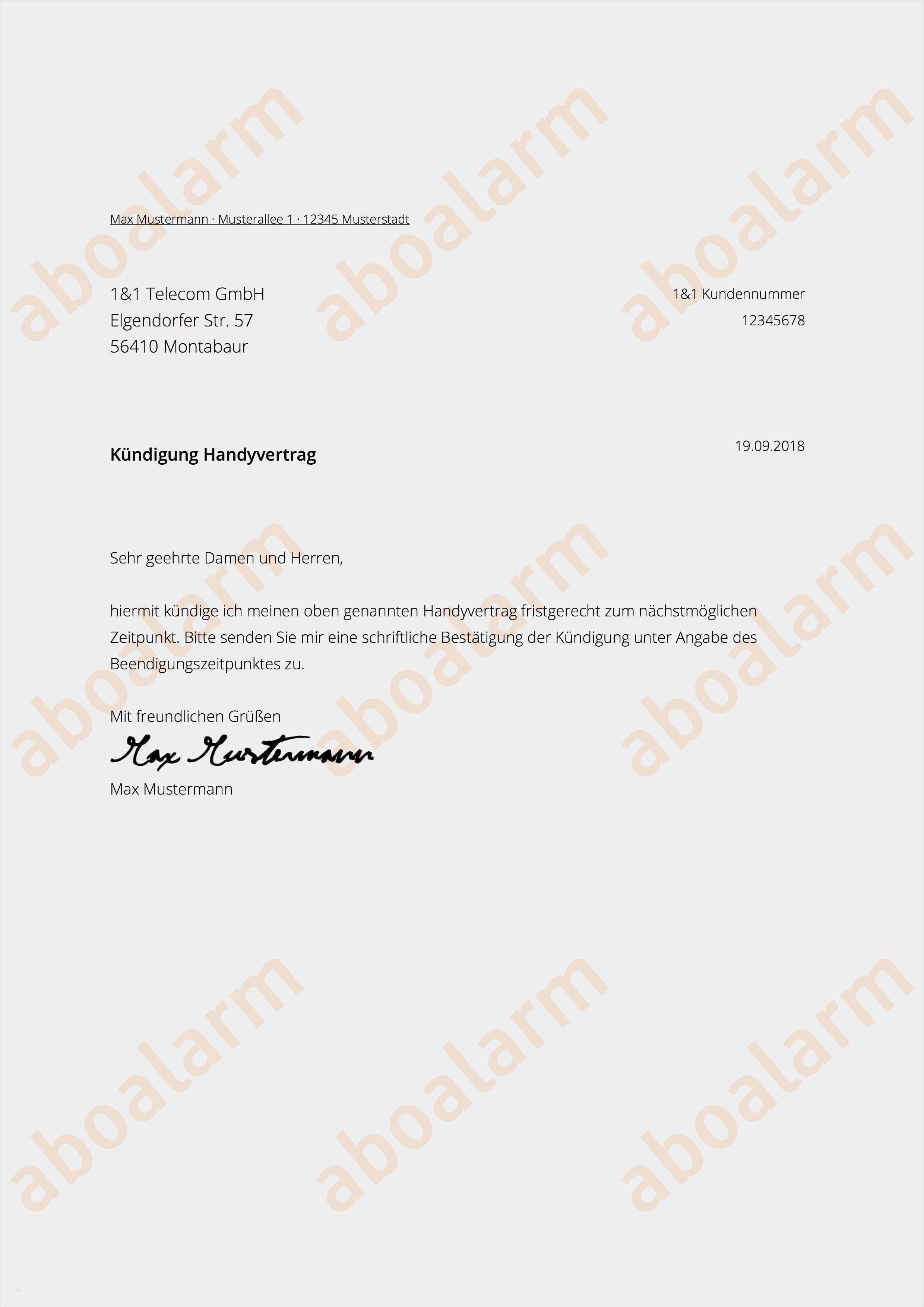 Erstelle eine 1 1 kündigung kostenlos mit unserer muster vorlage schnell und einfach in nur wenigen minuten erledigt. Schnell und einfach in nur wenigen minuten erledigt. 57 56410 montabaur deutschland e mail. Tragen sie dort einfach ihre daten ein und schicken sie die kündigung direkt online gegen ein entgelt in höhe von max.