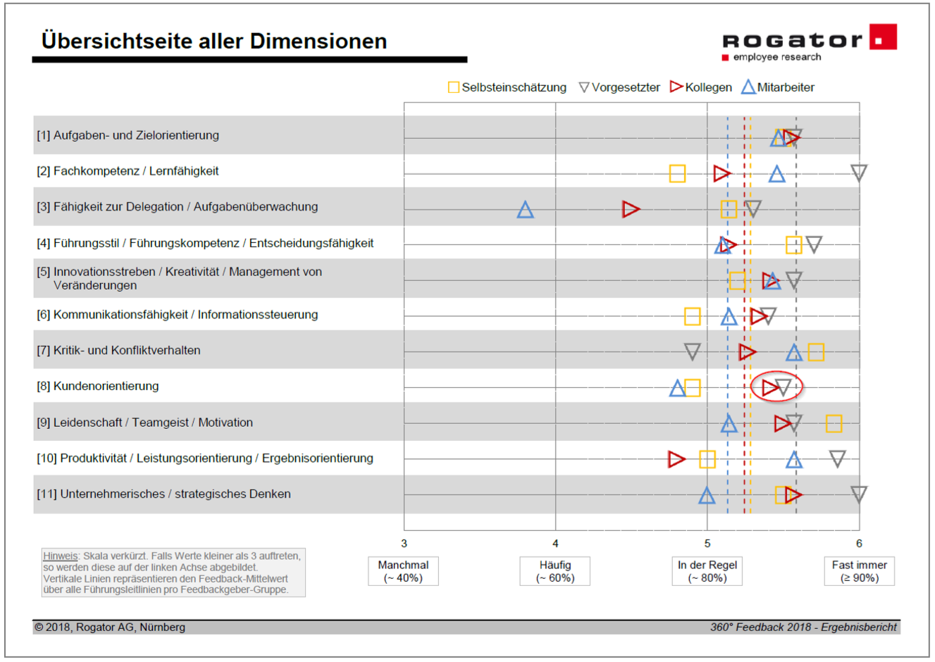 Mit dieser vorlage können sie eine 360 grad befragung durchführen bei der eine führungskraft von mehreren hierarchieebenen z b. Vorgesetzten kollegen kunden sowie durch sich selbst bewertet wird. Auswertungsbericht beispiel ein ausführliches beispiel für eine analyse und auswertung der ergebnisse eines 360 grad feedbakcs finden sie als pdf download unter dem link beispiel auswertung auszüge. Der gesamte bericht hat je nach anzahl der kompetenzen eine länge von 20 bis 30 seiten.