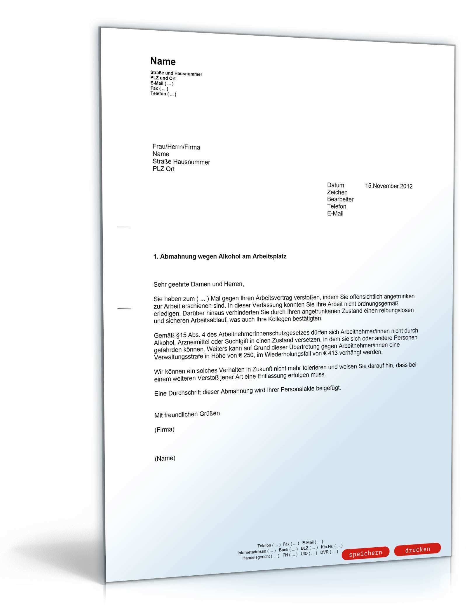 Abmahnung wegen verspaeteter krankmeldung muster. Eine vorherige abmahnung wegen unachtsamen umgangs mit arbeitsgeräten spielt zum beispiel keine rolle. Möglich ist eine abmahnung im zusammenhang mit einer krankheit. Wenn sie sich an diesem musterschreiben. Krankheit abmahnung und gründe abmahnungsgründe abmahnung und ermahnung weiterführende stichworte.