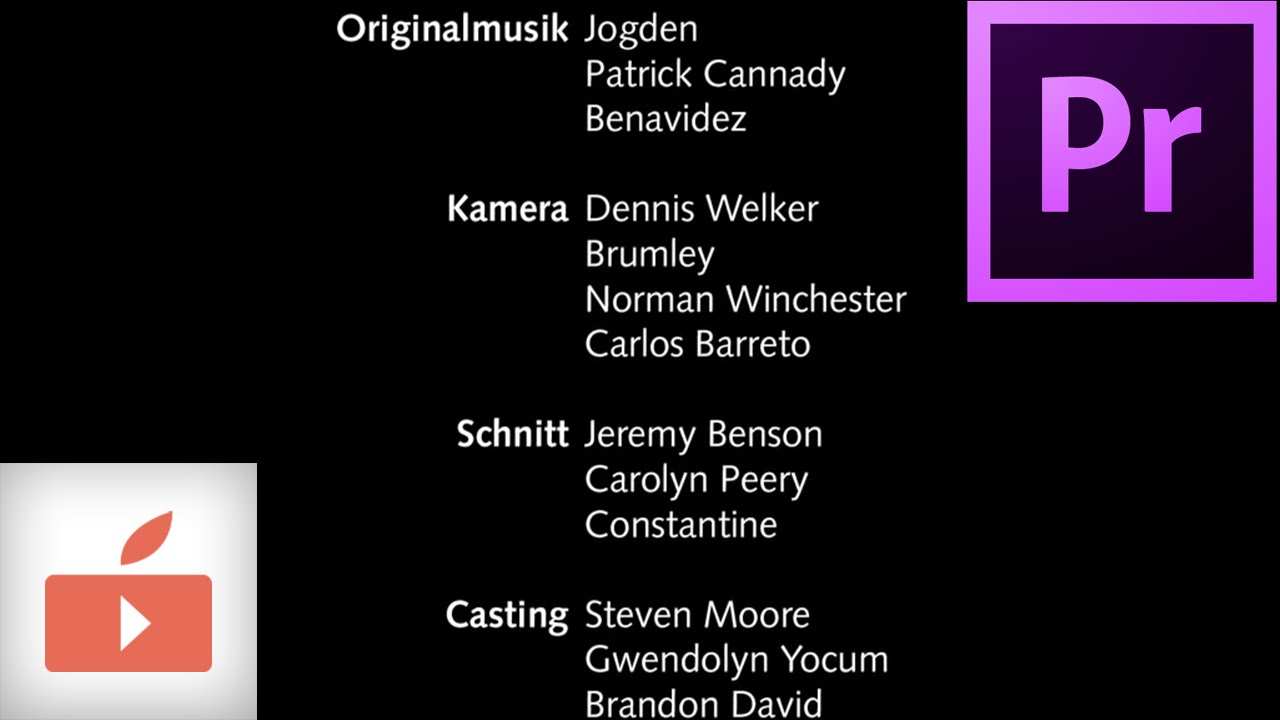 Nicht selten bringen filmemacher im abspann noch eine persönliche widmung oder einen kleinen gag unter. Sinn und zweck dieses mit abspanninformationen versehenen streifens ist es zu zeigen wie die von mir eingereichte auswahl von sequenzen genutzt werden soll. In diesem premiere pro tutorial zeige ich euch wie einfach man direkt in adobe premiere pro einen abspann erstellen kann und das ganz ohne zusätzliche plugi. Ist der abspann kurz genug um auf dem nächsten festival durchlaufen kann ohne das publikum zu verärgern.