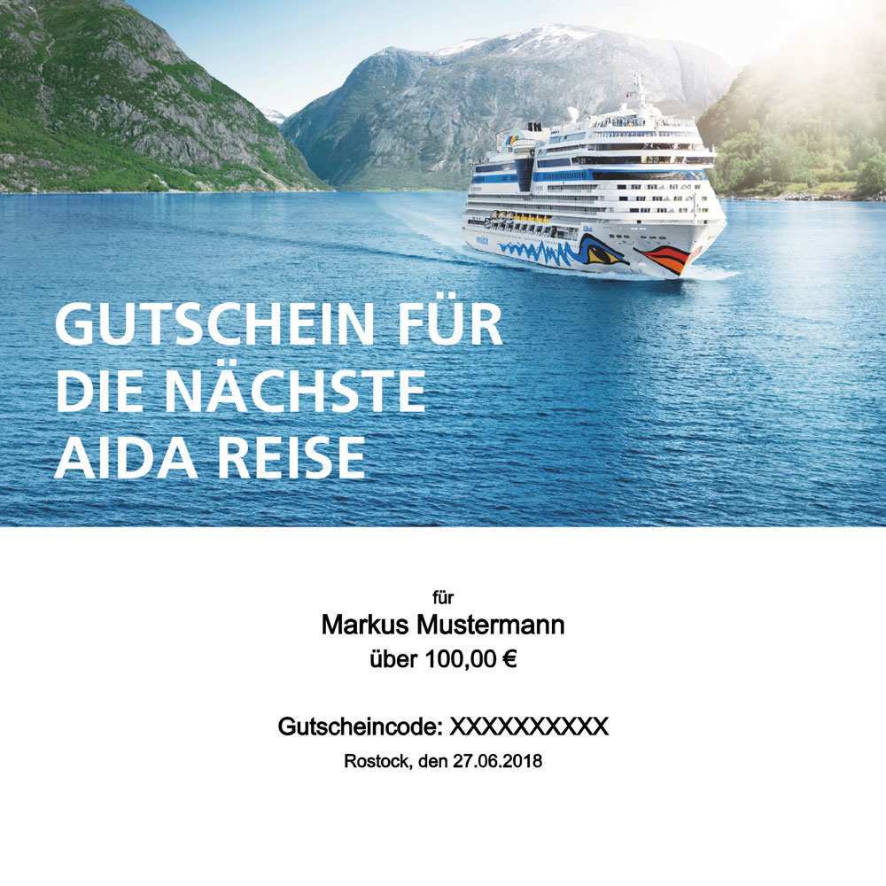 Mit einem aida gutschein schenken sie vielfältige möglichkeiten und bringen die beschenkten ihren urlaubsträumen ein großes stück näher. Sie möchten ihren lieben eine freude machen ob zum geburtstag zu ostern oder an weihnachten zum muttertag zur hochzeit oder als dankeschön. Nehmen sie im wahrsten sinne des wortes abstand vom alltag und schenken sie mit unseren kostenlosen vorlagen ihren lieben einen kreuzfahrt gutschein. Egal ob die flusskreuzfahrt durch die heimatlichen urlaubsparadiese deutschlands oder einen trip.