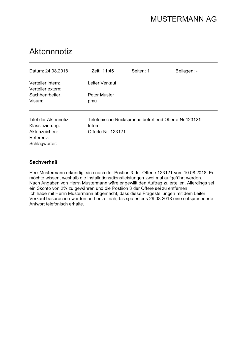 Der aktenvermerk der vermerk für eine akte ist vor allem in der öffentlichen verwaltung aber auch in sonstigen administrationen in denen akten geführt werden gebräuchlich. Vorlagen muster hier finden sie viele hilfreiche vorlagen muster und beispiele für wichtige dokumente men. Er wird abgeschlos sen mit datum und handzeichen dann folgen weitere verfügungen siehe auch 4a. Die aktennotiz die bezeichnung aktennotiz oder aktenvermerk stammt ursprünglich aus der verwaltung und der jurisprudenz.