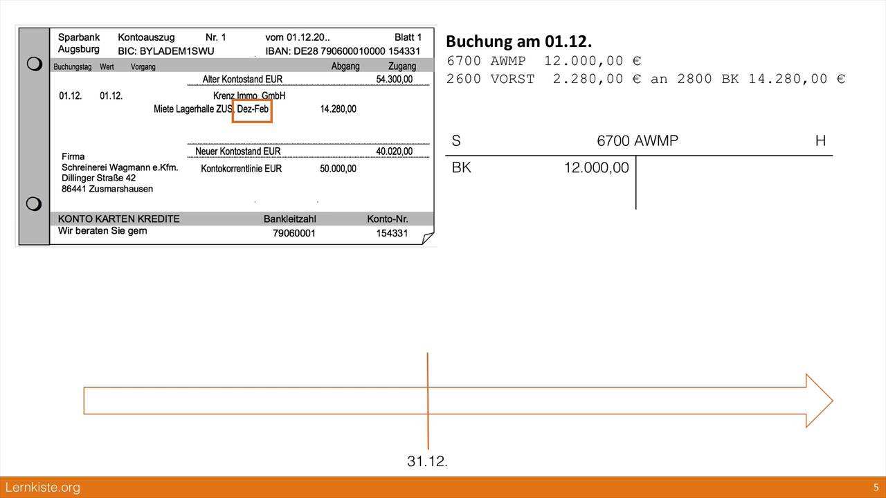 Stell dir vor du bezahlst im dezember eine versicherung für ein jahr im voraus. Am 1 9 2014 wurde die kfz versicherung in höhe von 2 400 für den pkw kombi im voraus für ein jahr durch banküberweisung bezahlt. Erläuterung vom konto aktive rechnungsabgrenzung. Auch artikel standardkontenrahmen im lexikon das über das schlussbilanzkonto abgeschlossen wird.