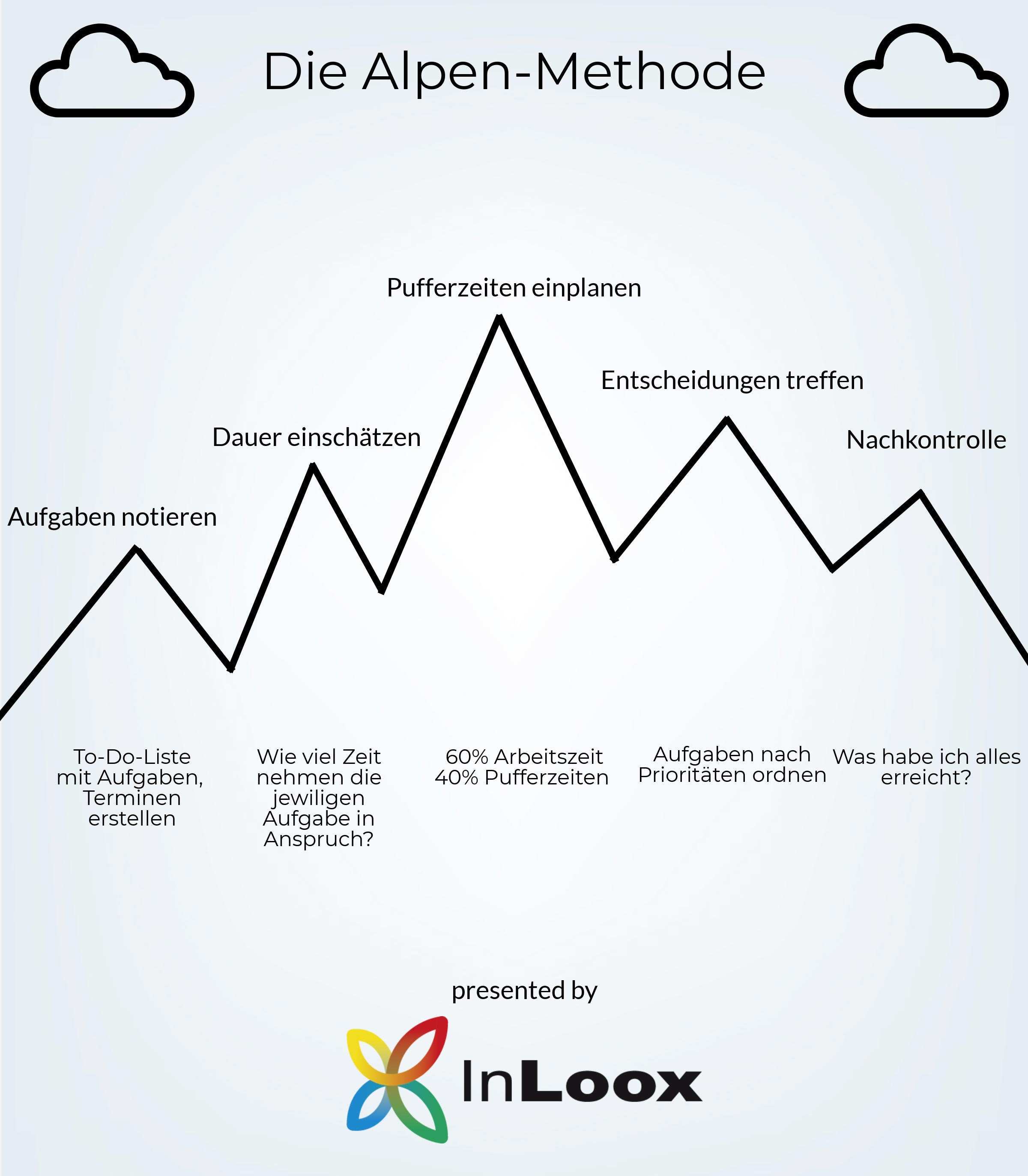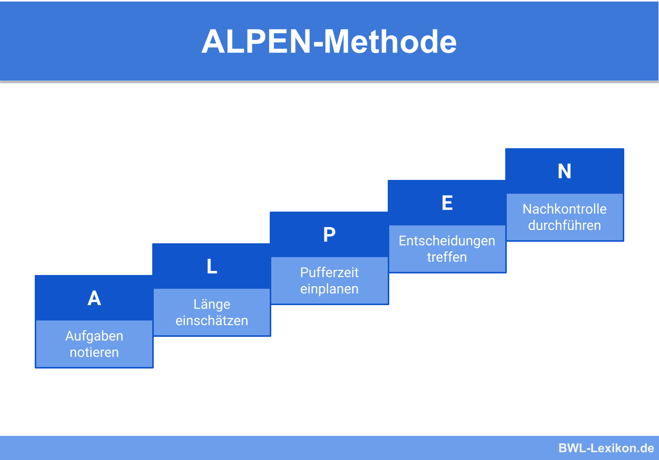 Alpen methode beispiel. Die alpen methode ist eine möglichkeit der arbeitsorganisation um das eigene zeitmanagement zu optimieren. Grund lage der alpen meth ode ist ein durchge planter tagesablauf. In unserem beispiel geht es um einen journalisten der deadlines für artikel hat und regelmäßig skype meetings abhält. Ein beispiel in unserem beispielhaften szenario arbeiten sie als marketing experte auf 8 stunden basis in einer online agentur.