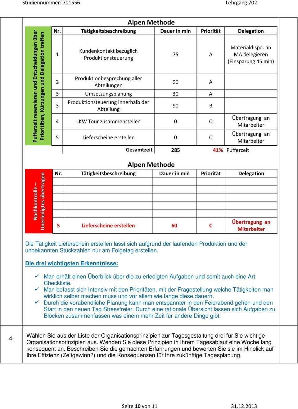 Es ist stark berufsabhängig ob die veranschlagten 60 prozent arbeitszeit tatsächlich ausreichend sind und ob die berufe solche detaillierte planungen überhaupt zulassen. E entschei dun gen treffen. Der begriff alpen methode stammt aus der personalwirtschaft und beschreibt eine einfache und effektive methode des täglichen zeitmanagements im personalmanagement. Hier erhalten sie ein beispiel zur anwendung der alpen methode im bereich studium.
