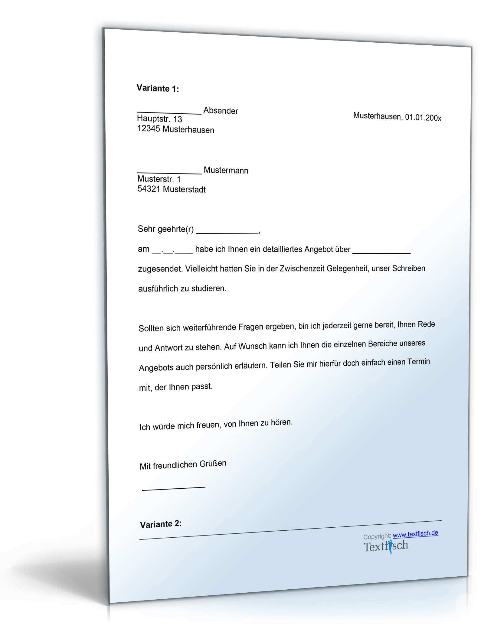 Angebot Nachfassen Vorlage