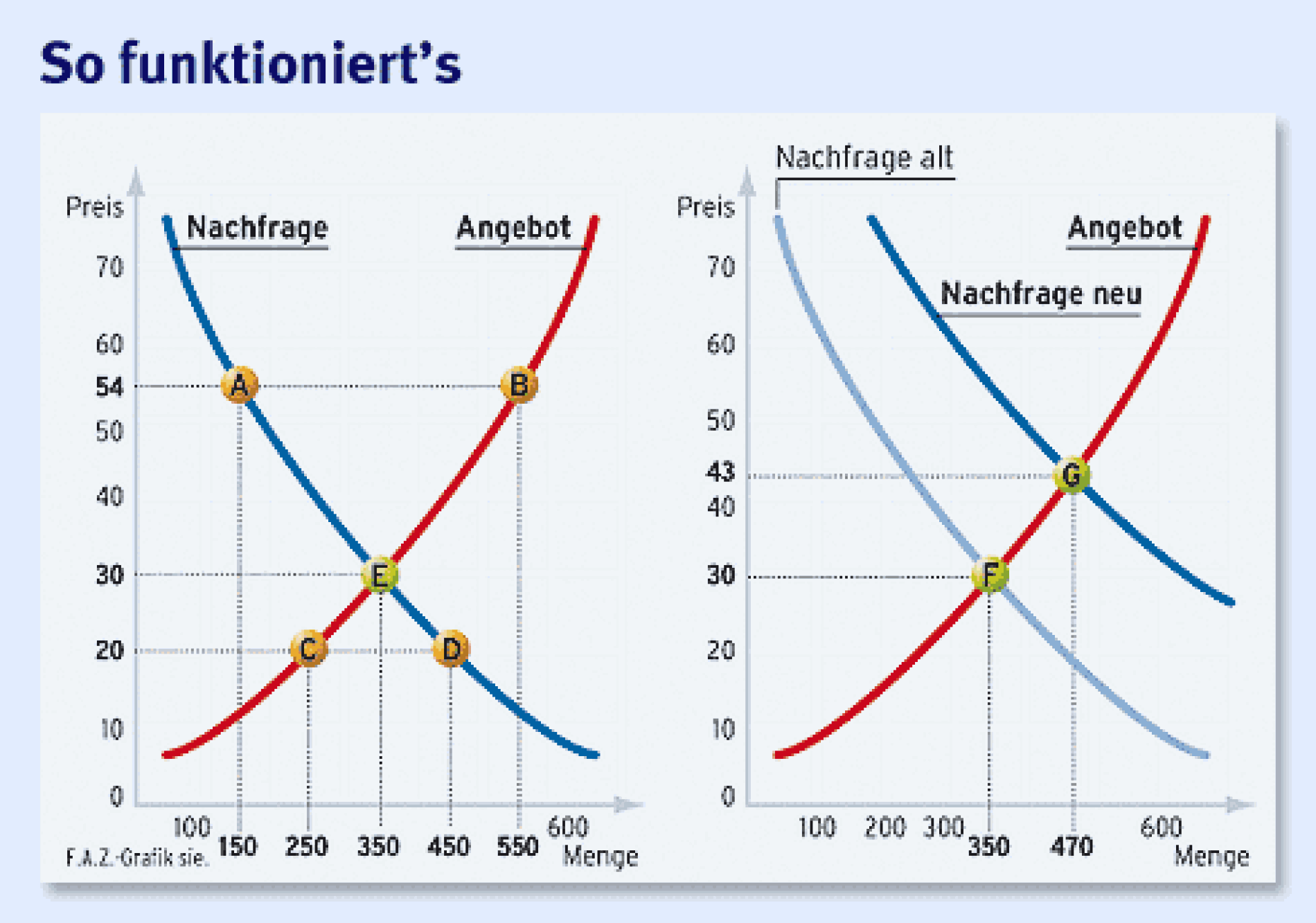 Bei sinkendem angebot und gleichbleibender nachfrage steigt der preis der ware. Es gibt verkäufer also anbieter von gütern und dienstleistungen. Das bedeutet dass die preiserhöhung stärker ist als der mengenrückgang. Wenn angebot und nachfrage übereinstimmen stellt sich ein gleichgewichtspreis ein.