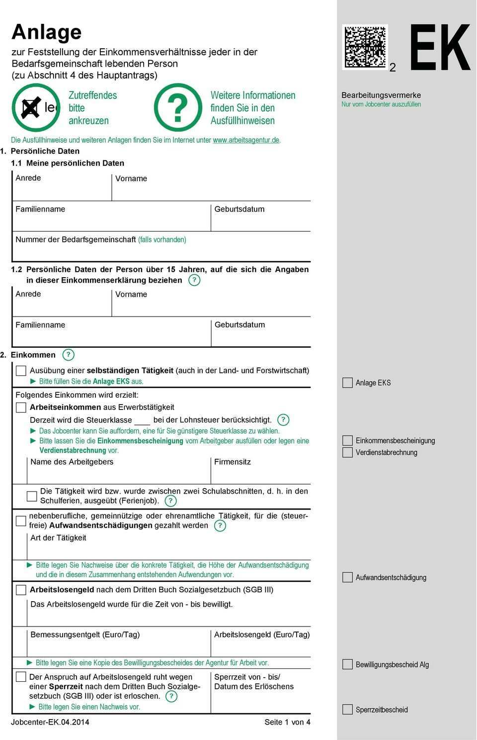 Nur vom jobcenter auszufüllen. Zur feststellung der einkommensverhältnisse einer in der bedarfsgemeinschaft lebenden person ab 15 jahren. Die anlage ek enthält noch eine reihe von weiteren angaben die sie machen müssen sofern sie auf ihre situation zutreffen. في هذا الفيديو سوف أشرح لكم كيف تقوموا بتعبئة استمارة بيان الدخل والنقاط.