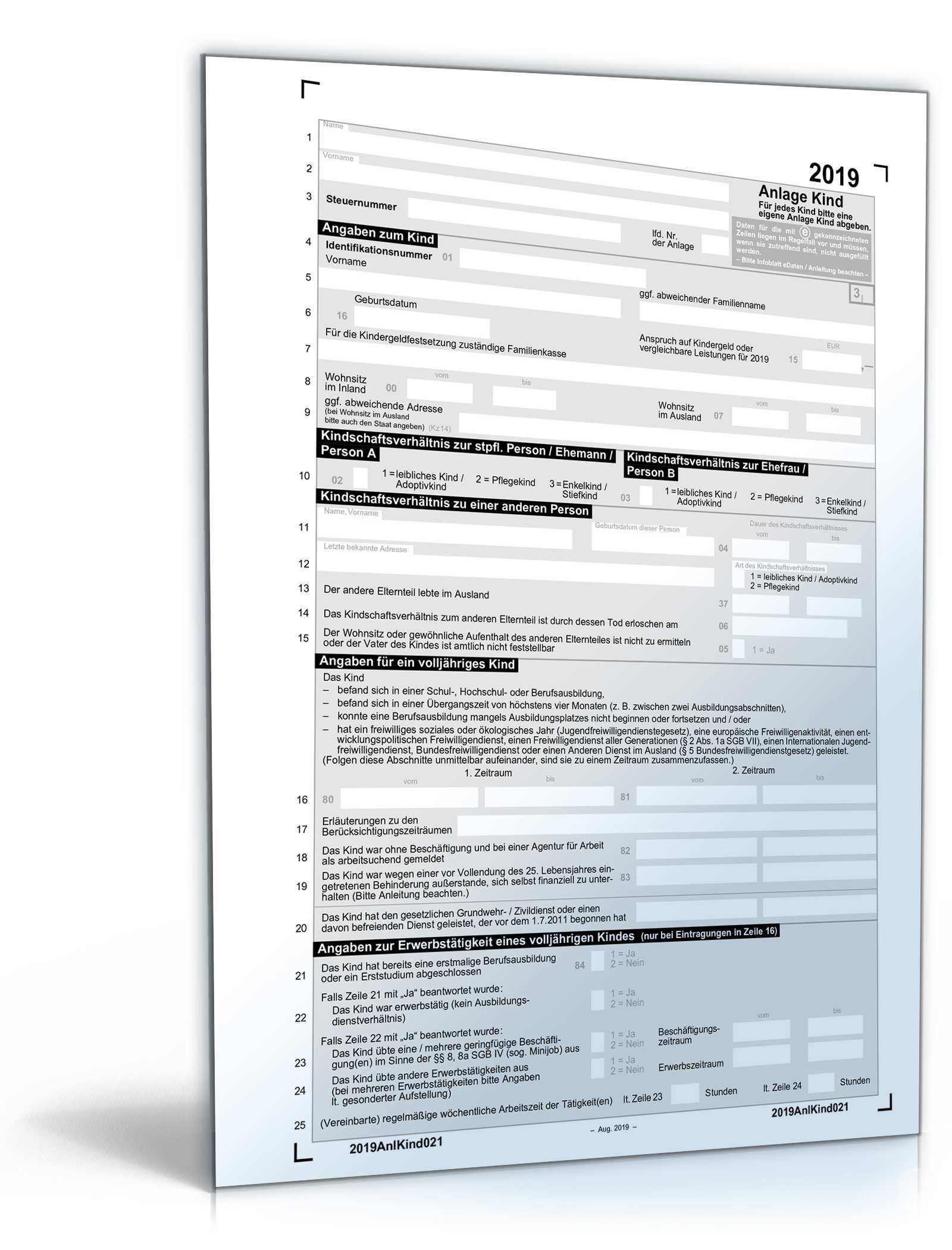 Die angaben zum kind identifikationsnummer name vorname geburtsdatum wohnort familienkasse die das kindergeld auszahlt sind für jedes kind das berücksichtigt werden soll notwendig. Eltern können in ihrer steuererklärung viele freibeträge erhalten wenn sie die anlage kind nach ausfüllhilfe ausfüllen. Hier müssen die angaben für jedes kind einzeln ausgefüllt werden die steuerlich berücksichtigt werden sollen. Für jedes kind ist eine eigene anlage kind auszufüllen unabhängig davon ob das kind bereits als lohnsteuerabzugsmerkmal elstam beim lohnsteuerabzug berücksichtigt wurde.