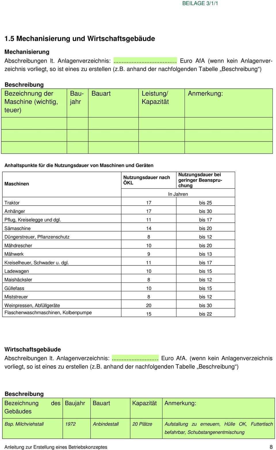 Anlagenverzeichnis Landwirtschaft Muster