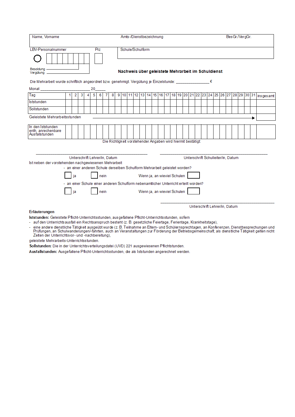 Muster vorlage für die anordnung von überstunden sofort zum download. Muster arbeitsvertrag teilzeit inklusive erklärung als pdf word vorlage zum kostenlosen download. 4 verfahren zur genehmigung der maßnahmen. 3 betriebsverfassungsgesetz betrvg bestimmt dass die vorübergehende verlängerung der betriebsüblichen arbeitszeit mitbestimmungspflichtig ist.