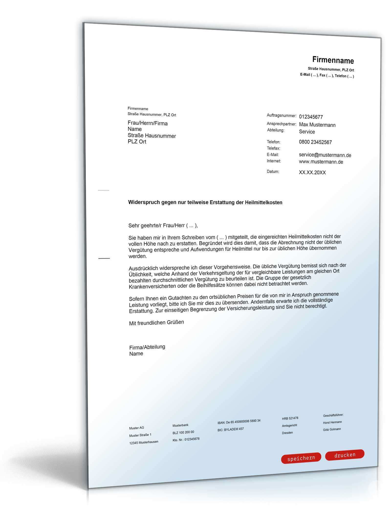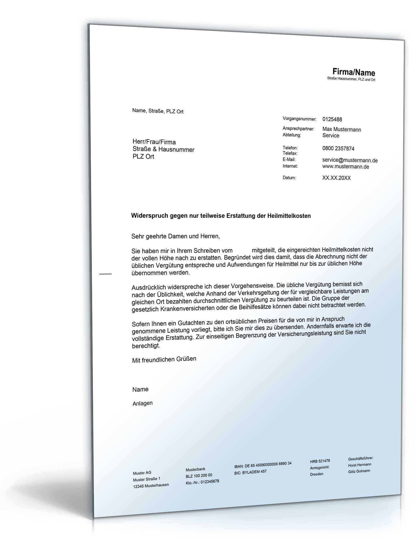 Anschreiben Krankenkasse Kostenerstattung Muster