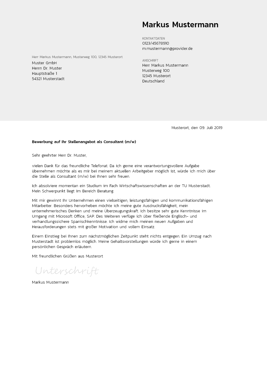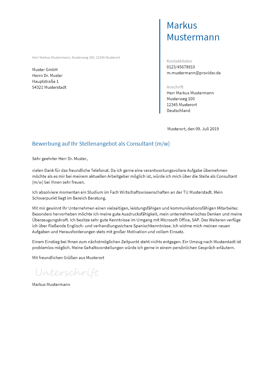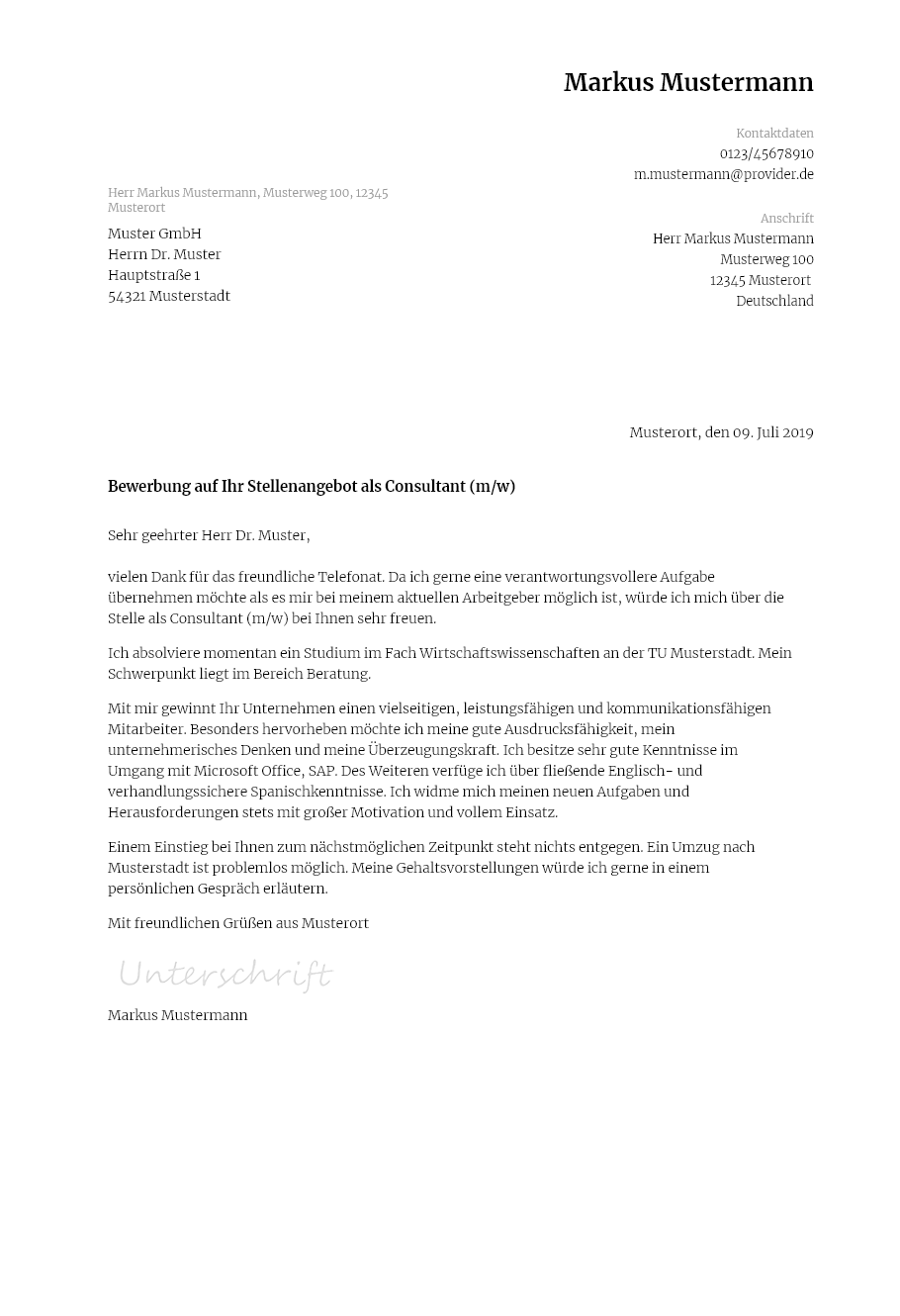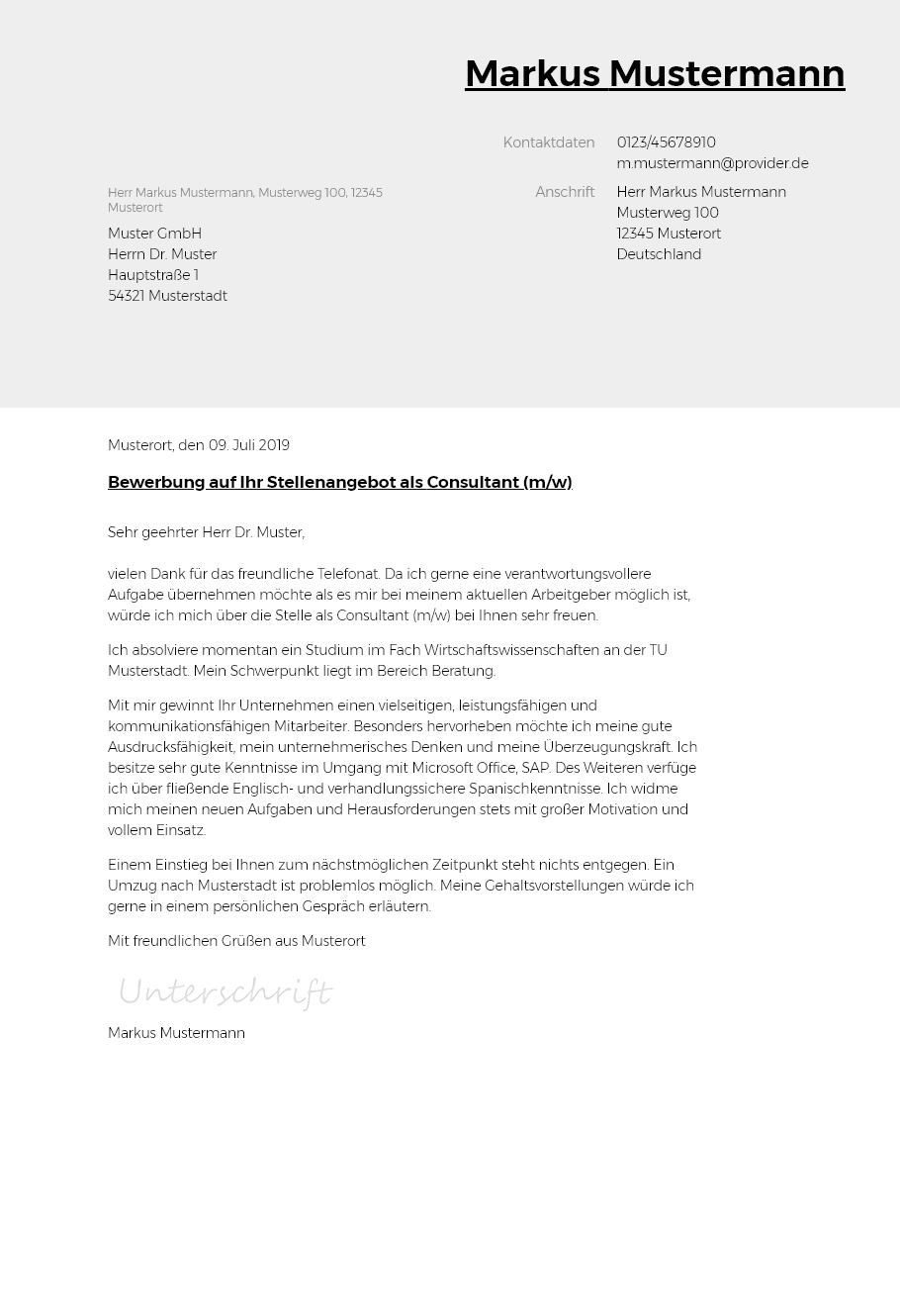 Ein anschreiben einen aktuellen und gut strukturierten lebenslauf. Neben den klassischen marketingmaßnahmen spielen auch kundenspezifische angebotsschreiben in bestimmten branchen eine große rolle. So klappt es mit der karriere bei der unternehmensberatung. Diese und weitere vorlagen zum bewerbungsanschreiben gibts hier zum download.