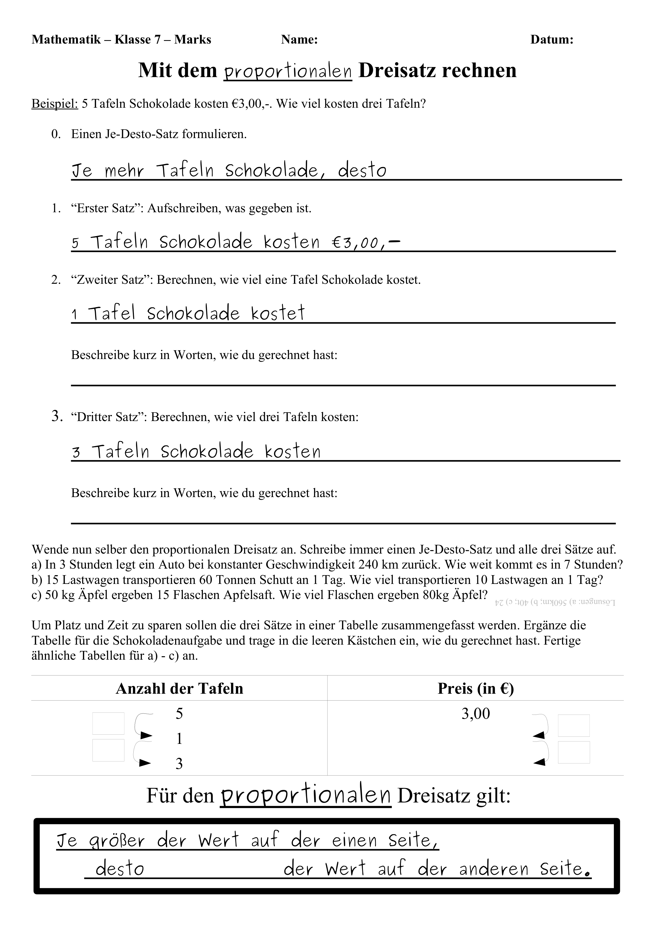 Antiproportionale Zuordnung Beispiel