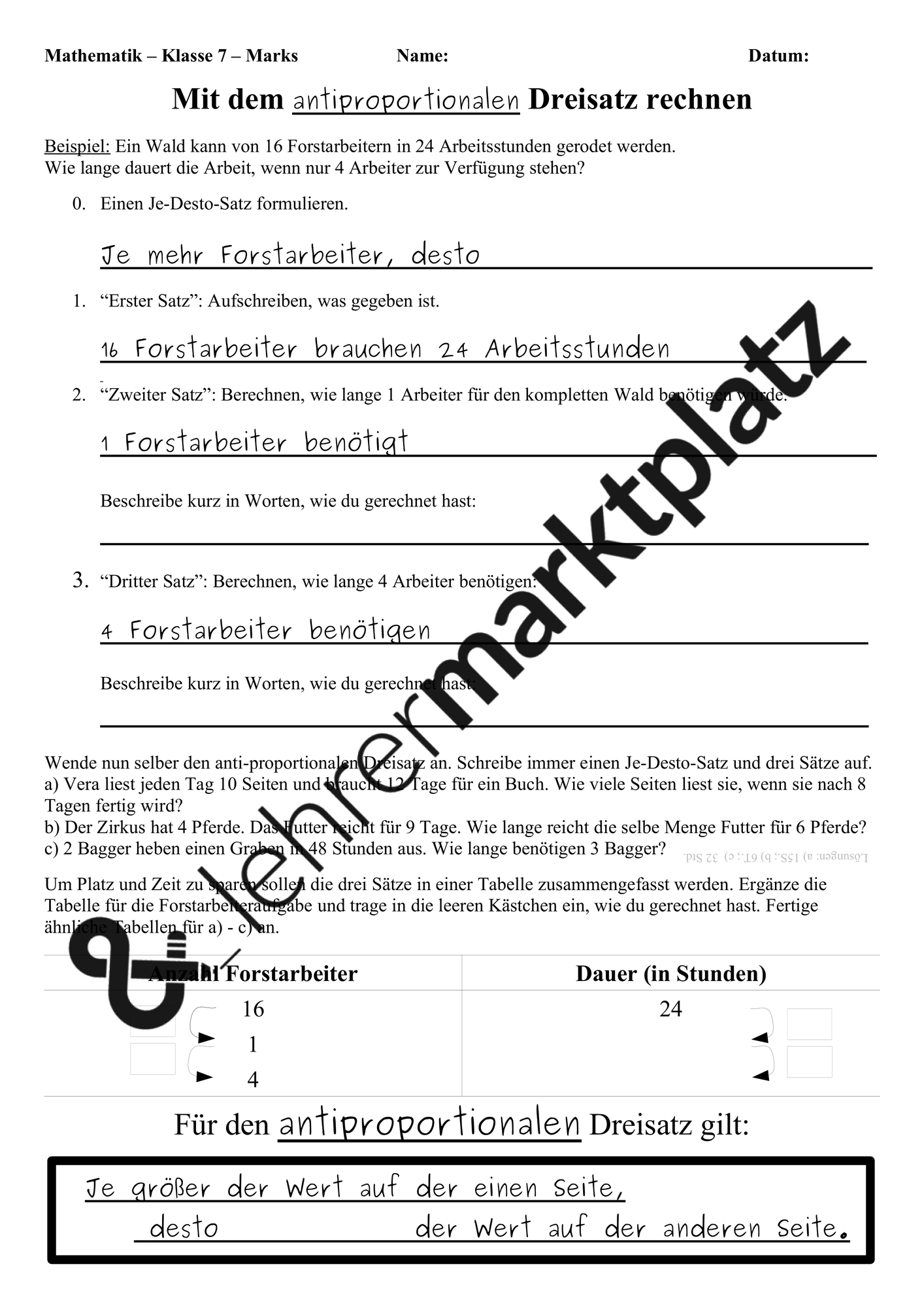 Antiproportionale zuordnung beispiel. Doppelt so viel handwerker halb so viel zeit. Anti proportionale zuordnung üben aufgabe. Für eine antiproportionale zuordnung x longmapsto y gilt also. Im matheunterricht sollen gruppen gebildet werden.