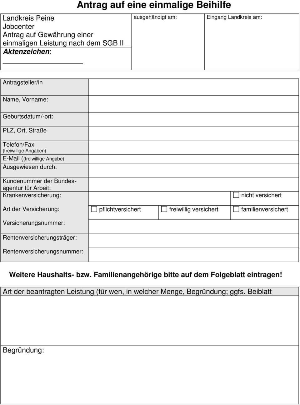 Antrag auf einmalige beihilfe muster. 2 des zweiten buch sozialgesetzbuch sgb ii hinweis die erstausstattung für schwangerschaft ist auf den bekleidungsbedarf beschränkt und wird pauschal gewährt. 3 31 sgb xii. Einmalige beihilfen werden auch erbracht wenn die leistungsberechtigten keine regelsatzleistungen benötigen den bedarf jedoch aus eigenen kräften und mitteln nicht voll decken können. Das kann bei geringverdienern der fall sein.