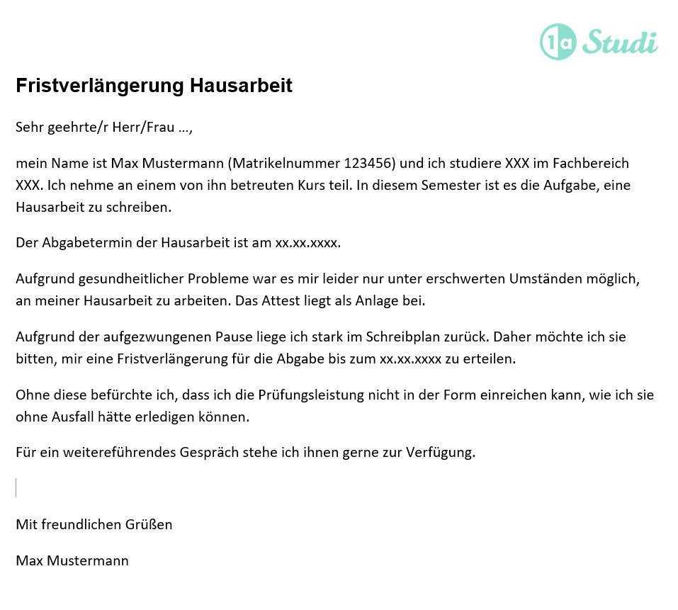 Antrag Auf Fristverlaengerung Studium Beispiel