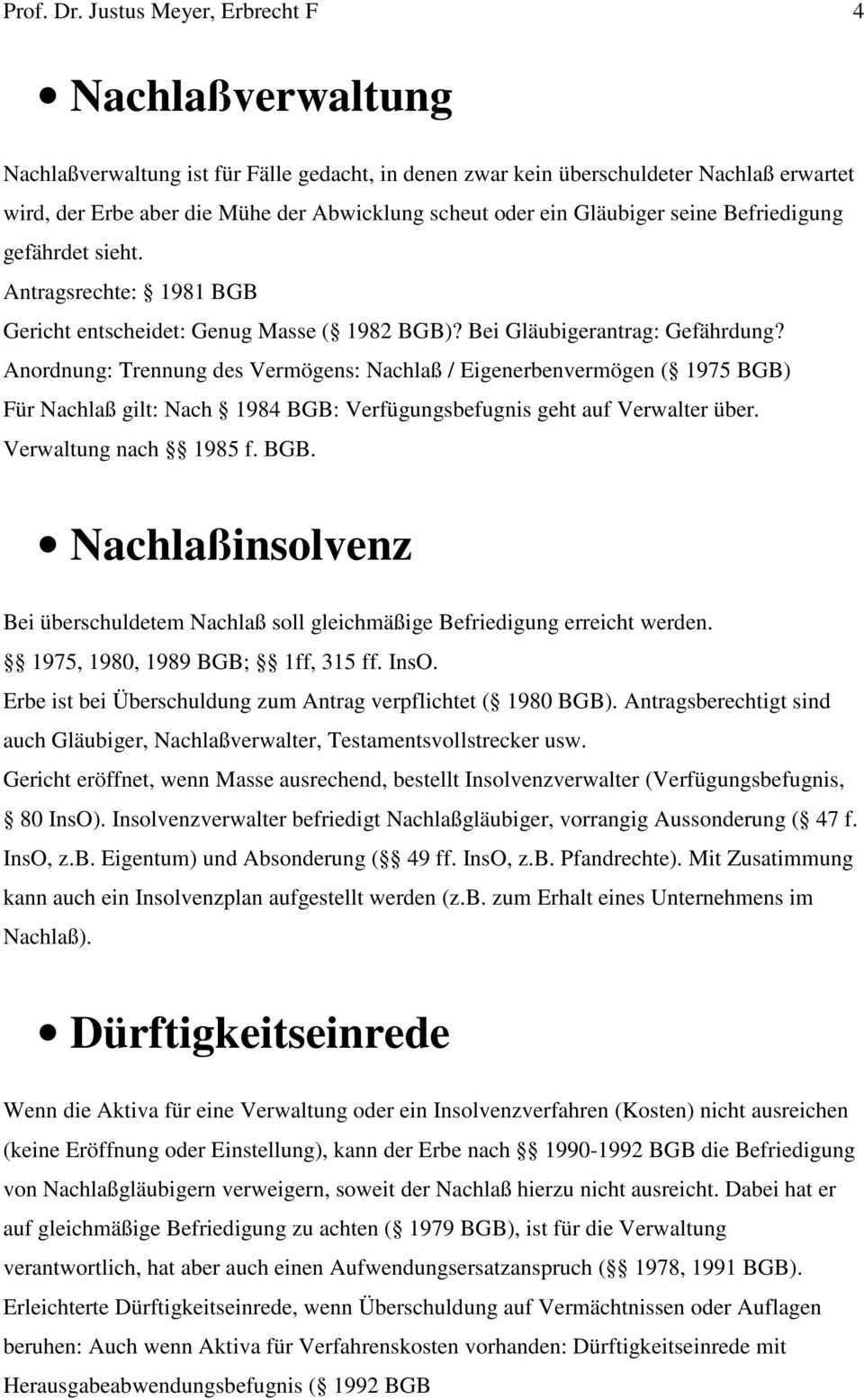 Anordnung der nachlassverwaltung nach 1975 ff. Ein antrag eines nachlassgläubigers dies kann auch ein pflichtteilsberechtigter oder ein vermächtnisnehmer mit forderungen gegen den nachlass sein auf anordnung einer nachlassverwaltung beim nachlassgericht ist nach 1981 abs. Muster für einen antrag auf anordnung der nachlassverwaltung. Die anordnung der nachlasspflegschaft erfolgt durch beschluss 38 famfg und unterliegt damit der befristeten beschwerde des erben 58 59 famfg.