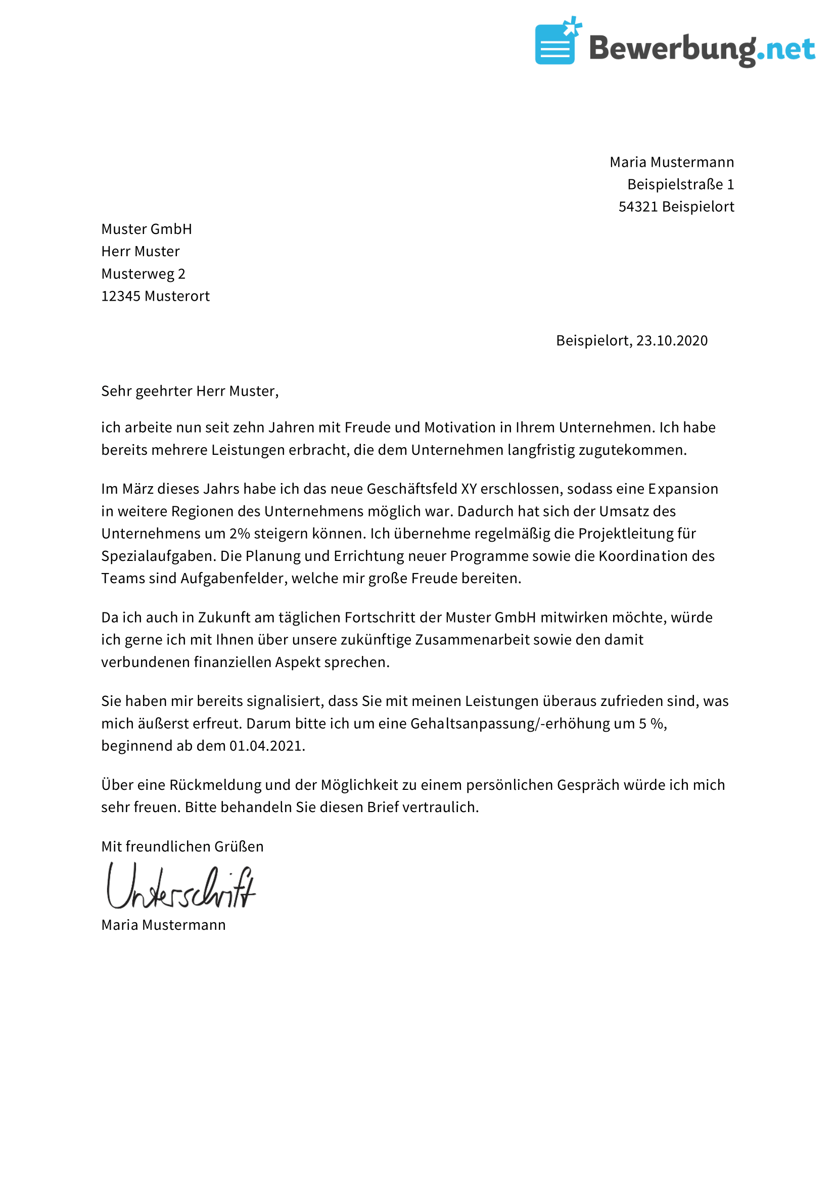 Es geht nicht darum die. Johann musterarbeit musterweg 5 98765 musterland adresse. Ja ich willige ein dass die formblitz gmbh mir regelmäßig news zu rechtlichen änderungen und sonderaktionen an meine oben genannte e mail adresse schickt. Kostenlose vorlage für einen musterbrief bezüglich einer gehaltserhöhung gute beispiele und musterschreiben für eine gehaltserhöhung für mitarbeiter und arbeitgeber hilfreiche tipps und beispiel briefe für gehaltserhöhung schreiben erfolgreiche textvorlagen.