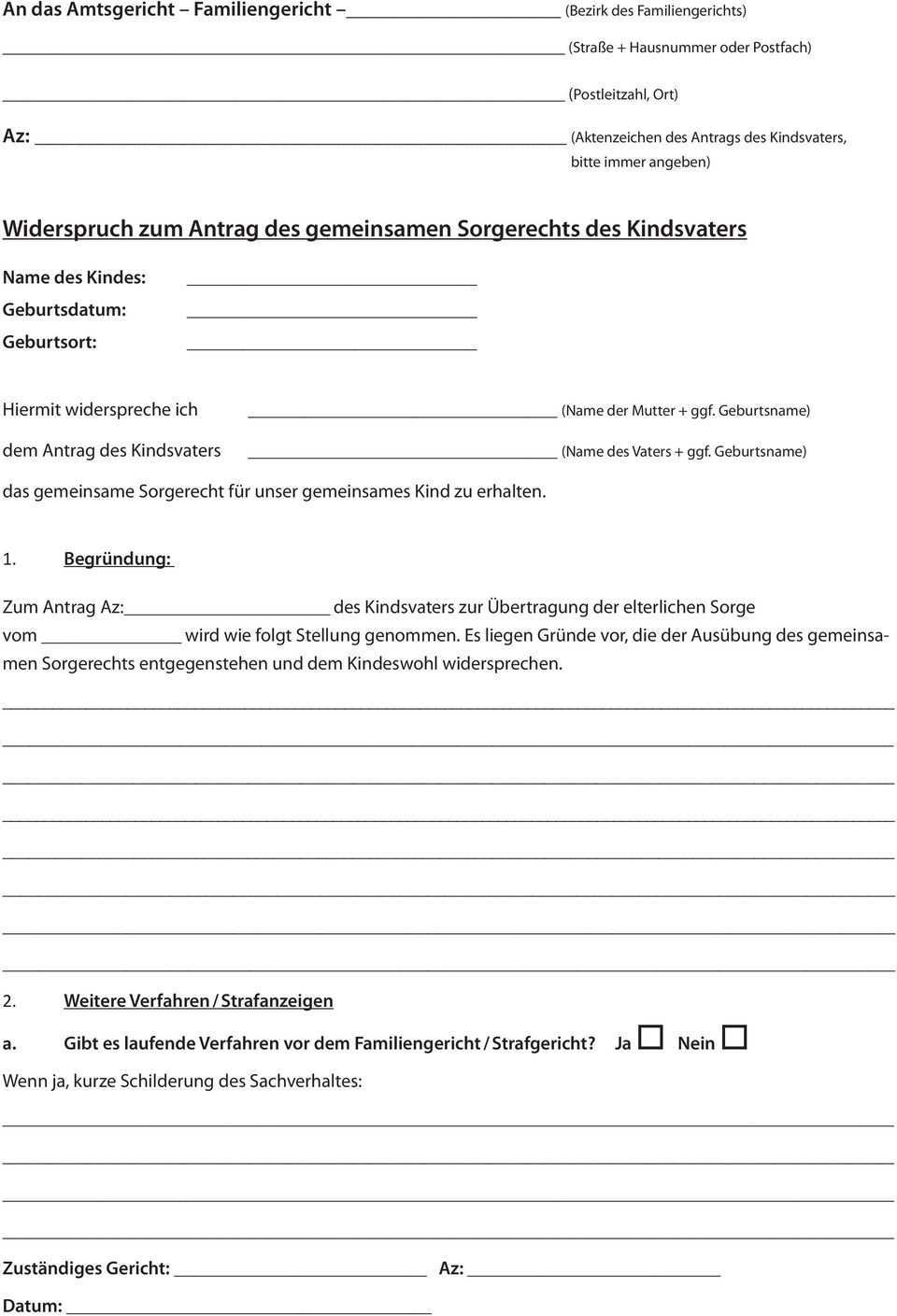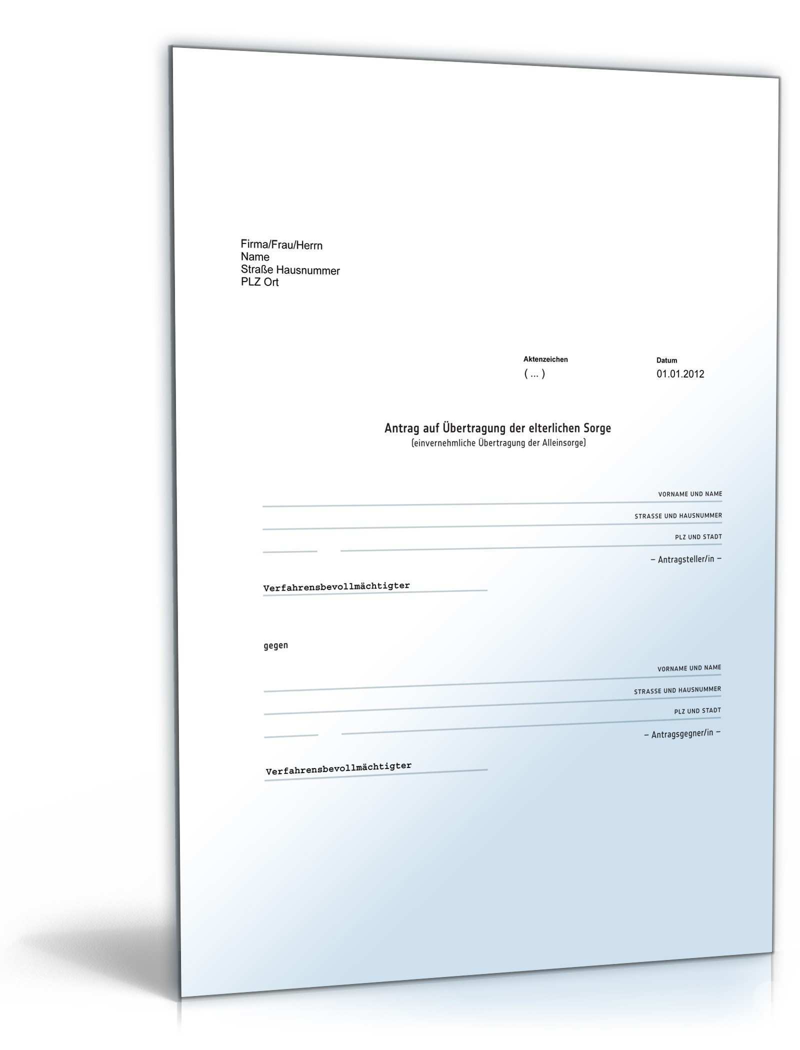Antrag sorgerecht muster. Antrag auf anordnung der gemeinsamen elterlichen sorge gem. Mit dieser vorlage kann eine sorgerechtsverfügung für sorgeberechtigte erstellt werden. Weigert sich die mutter gegen die abgabe einer gemeinsamen sorgerechtserklärung so besteht für den vater nur die möglichkeit einen antrag beim familiengericht zu stellen um das gemeinsame sorgerecht zu erhalten. Sehr geehrte damen und herren hiermit beantrage ich eine negativbescheinigung um das alleinige sorgerecht nachweisen zu können.