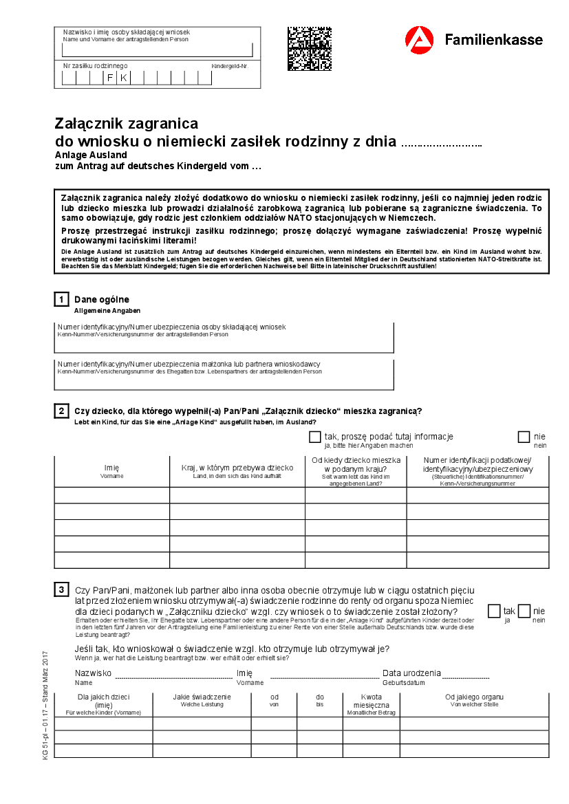 Anlage kind zum kindergeldantrag polnisch kg 1 pl anlage kind załącznik dziecko do wniosku o zasiłek rodzinny 1 1 mb. Bei einem in deutschland ansässigen arbeitgeber beschäftigt ist. Bei einem in deutschland ansässigen arbeitgeber beschäftigt ist. Zur vorlage bei der familienkasse.