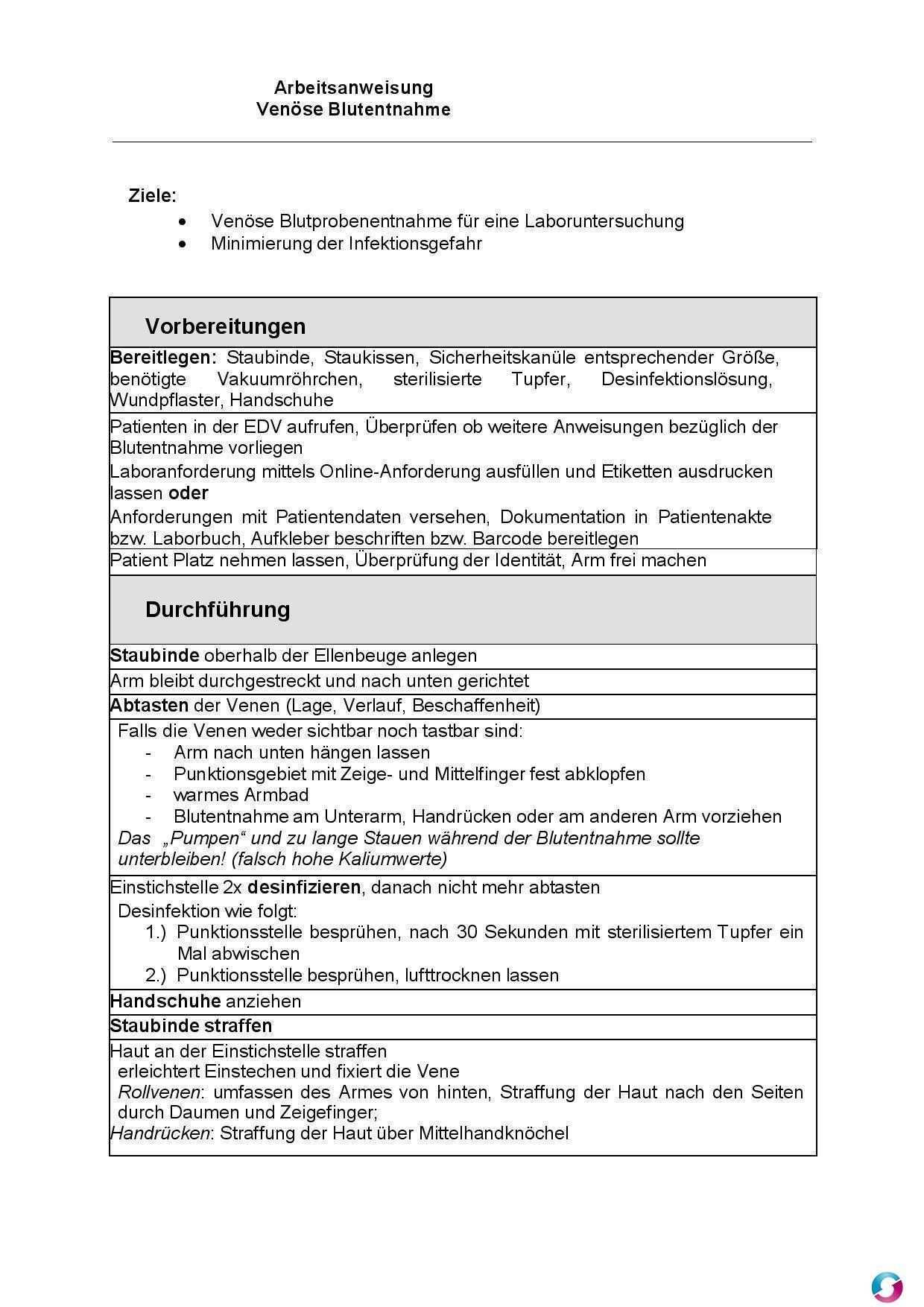 Laden sie für ihre arbeitsanweisung unsere kostenlose vorlage oder ein muster für word oder excel herunter. 0132002 verfahrensanweisung amb doc vorwort der autoren diese muster verfahrensanweisung für den bereich der ambulanten behandlung mit blutkomponenten und plasmaderivaten soll als vorschlag und hilfestellung dienen für die jeweilige arztpraxis eine verfahrensanweisung zu erstellen in der alle we. Dokumentation zu erstellende nachweise aufzeichnungen 5. Muster vorlage zur erstellung einer arbeitsanweisung.