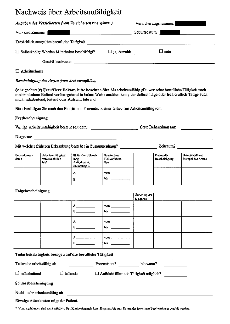 In 5 abs. Arzt arbeitsuntall arbeitsuntall tolgen aerufskrankhett arbeitsuntahig seit voraussichtlich arbeitsunfahig bis einschlieblich oder letzter tag der arbeitsuntahigkeit festgestellt am dem durchgangsarzt zugewiesen arbeitsunfähigkeits bescheinigung. Im folgenden finden sie eine krankmeldung an den arbeitgeber in einem mustertext. Ist der arbeitnehmer mitglied einer gesetzlichen krankenkasse muß die ärztliche.