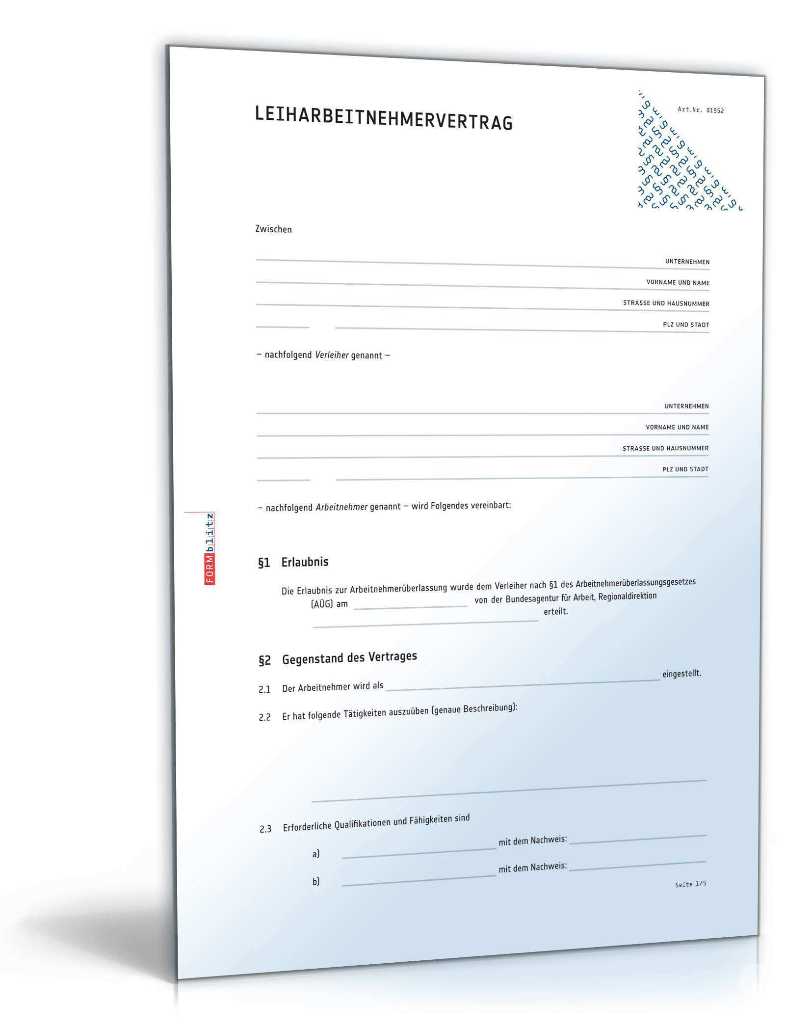 Arbeitsvertrag Leiharbeitnehmer Muster