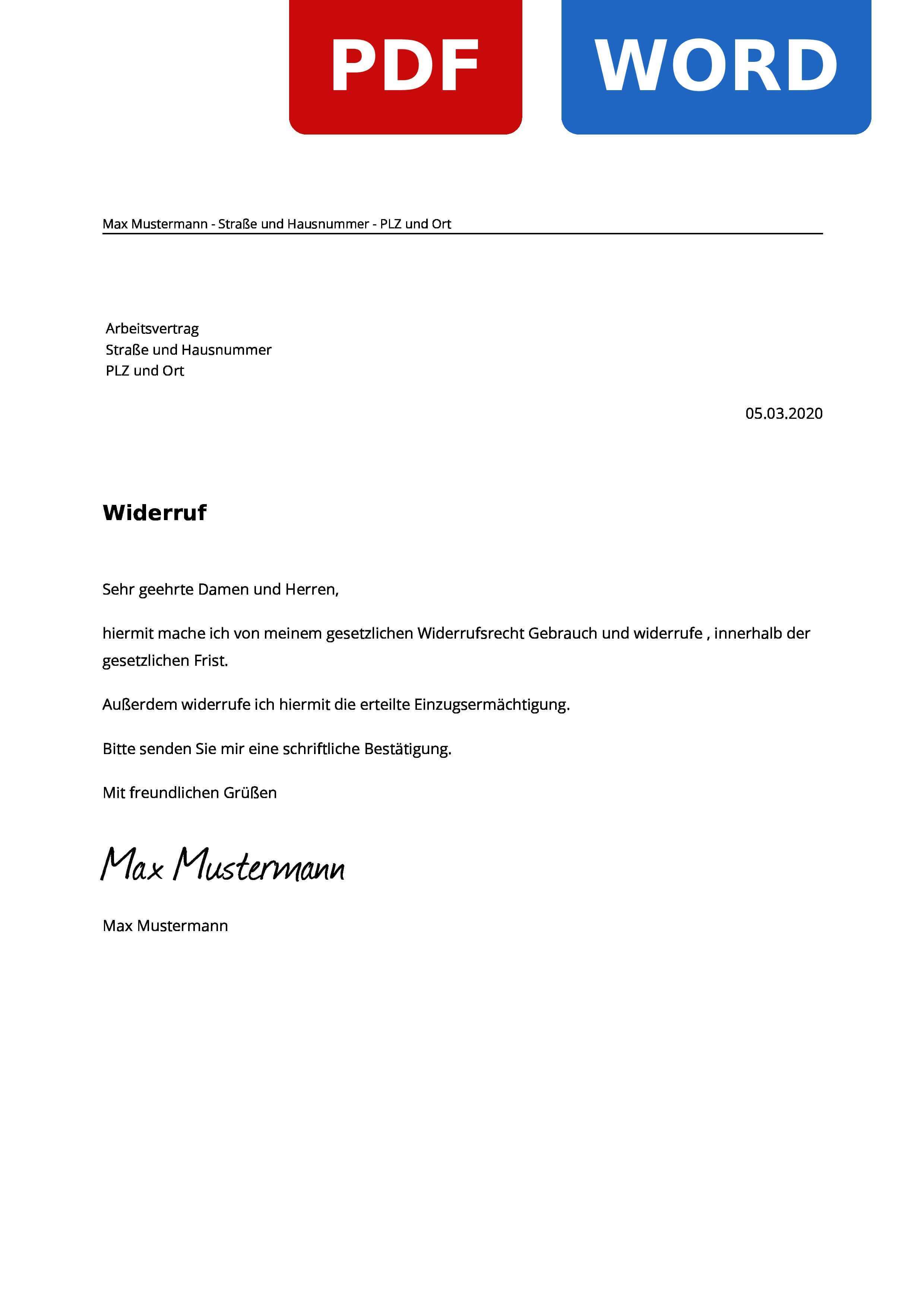 Arbeitsvertrag Widerrufen Muster