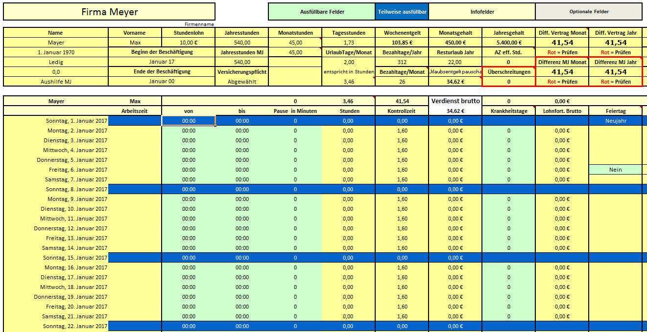 Hier muss immer aufgezeichnet werden. Speichern sie nach dem eintragen aller daten die datei um diese anzuwenden. Ihre abgaben an die minijob zentrale richten sich nach dem vereinbarten monatsverdienst. Auf den ersten blick ist es ganz weiterlesen.