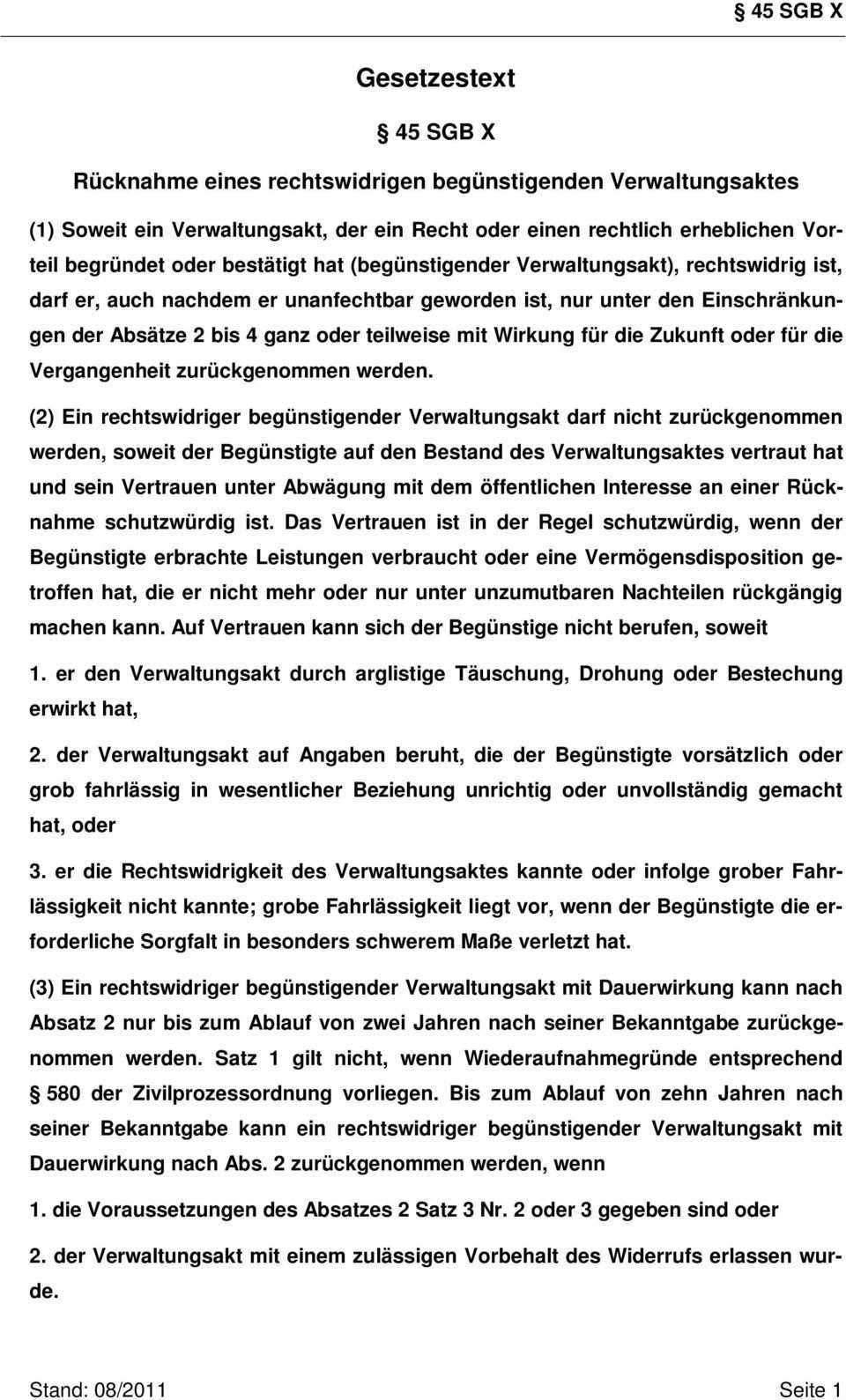 Aufhebung eines verwaltungsaktes mit dauer wirkung 48 sgb x 4 1. Vorrangig sind speziellere regelungen anzuwenden insbesondere 45 i waffg und 15 i gastg sind insofern zu beachten. Rechtsfolgen der aufhebung 5 1 erstattung zu unrecht erbrachter leistungen allge meines. Rücknahme eines vas 48 vwvfg gilt für die aufhebung eines rechtswidrigen vas.