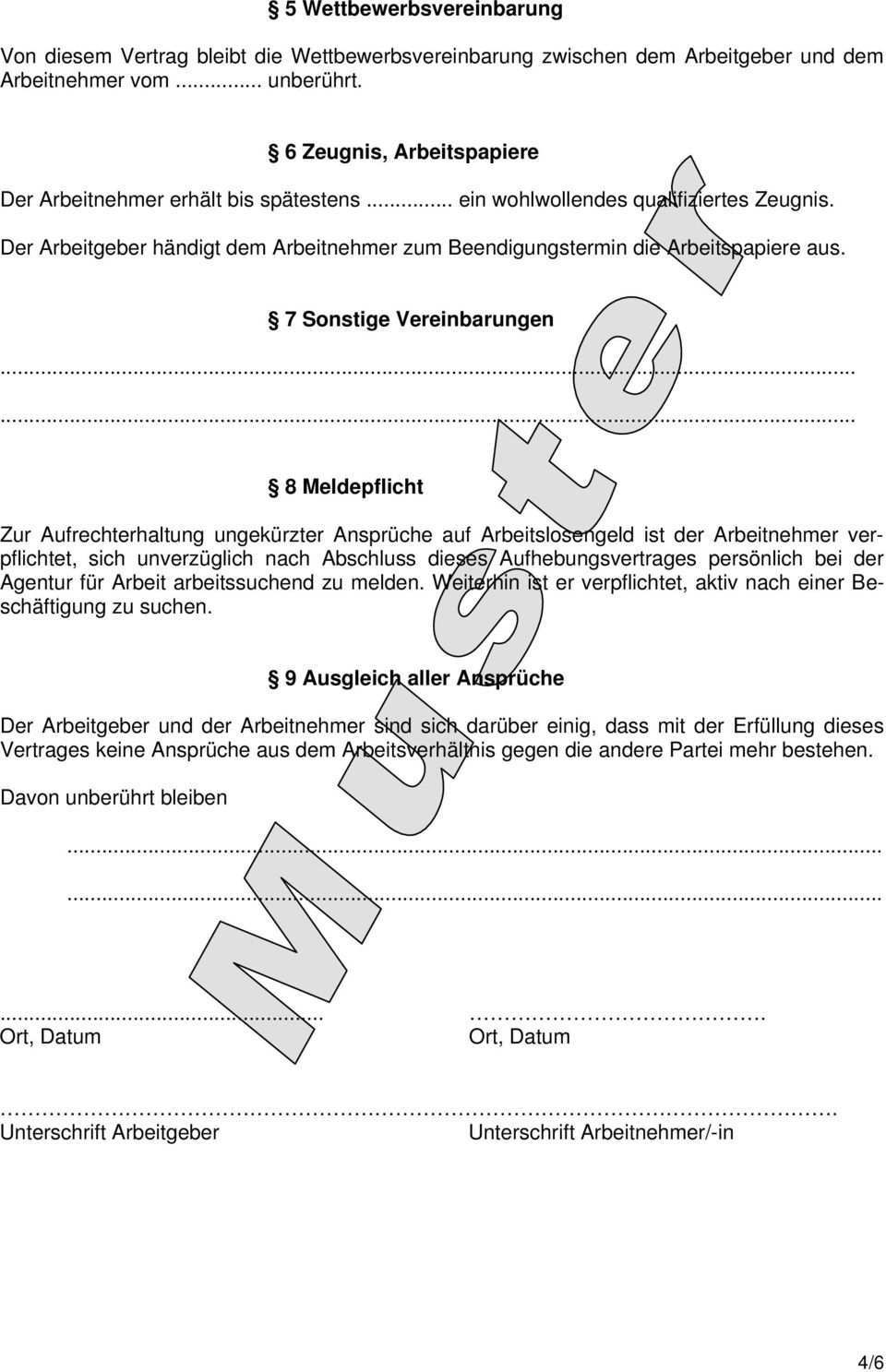 Den link zum download der vertragsvorlage als pdf und word dokument finden sie am ende dieser seite. Was ist beim aufhebungsvertrag nach der elternzeit zu beachten. Auch die aufhebungsvereinbarung kann in dieser konstellation eine sperrzeit verwirken. Sie können kostenlos einen aufhebungsvertrag nach der elternzeit als muster downloaden.