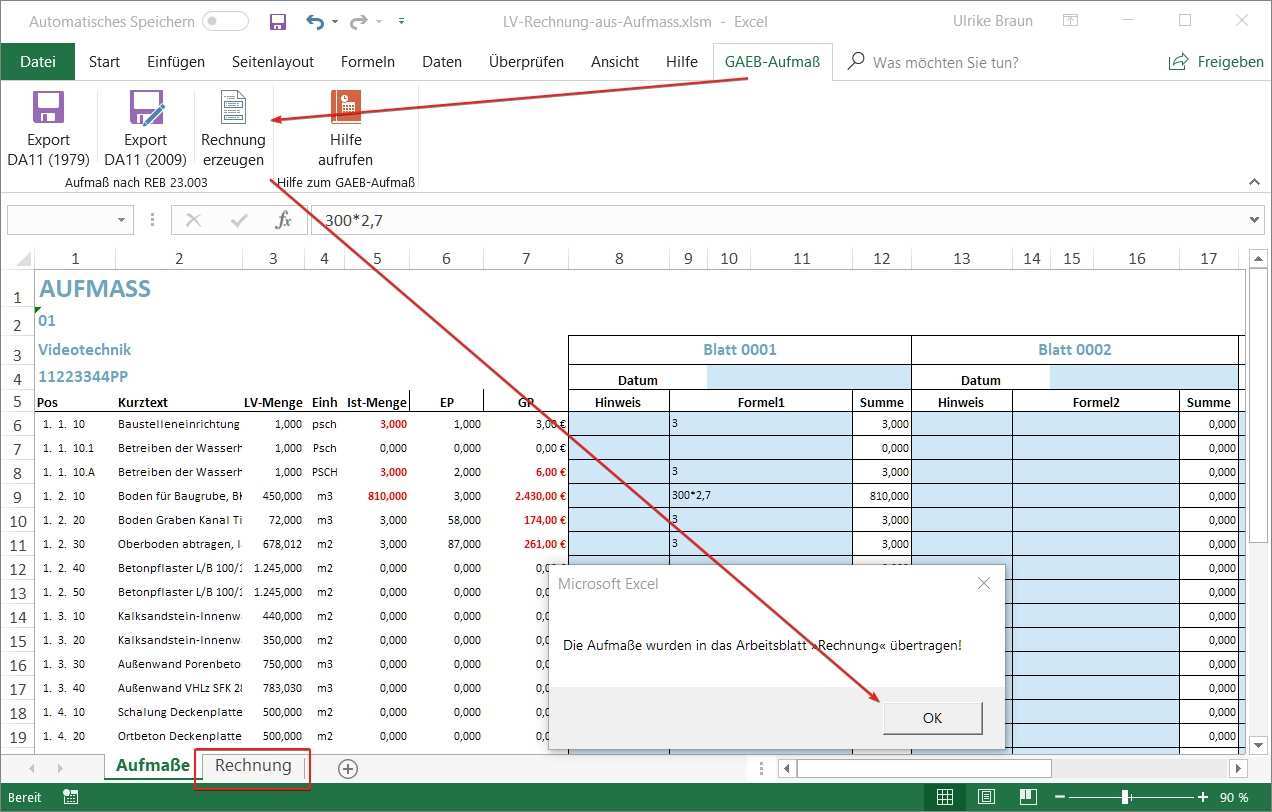 Unsere excel vorlagen ermöglichen es aufmaße auf verschiedene arten zu erfassen und hieraus eine da11 oder gaeb x31 datei zu erzeugen.