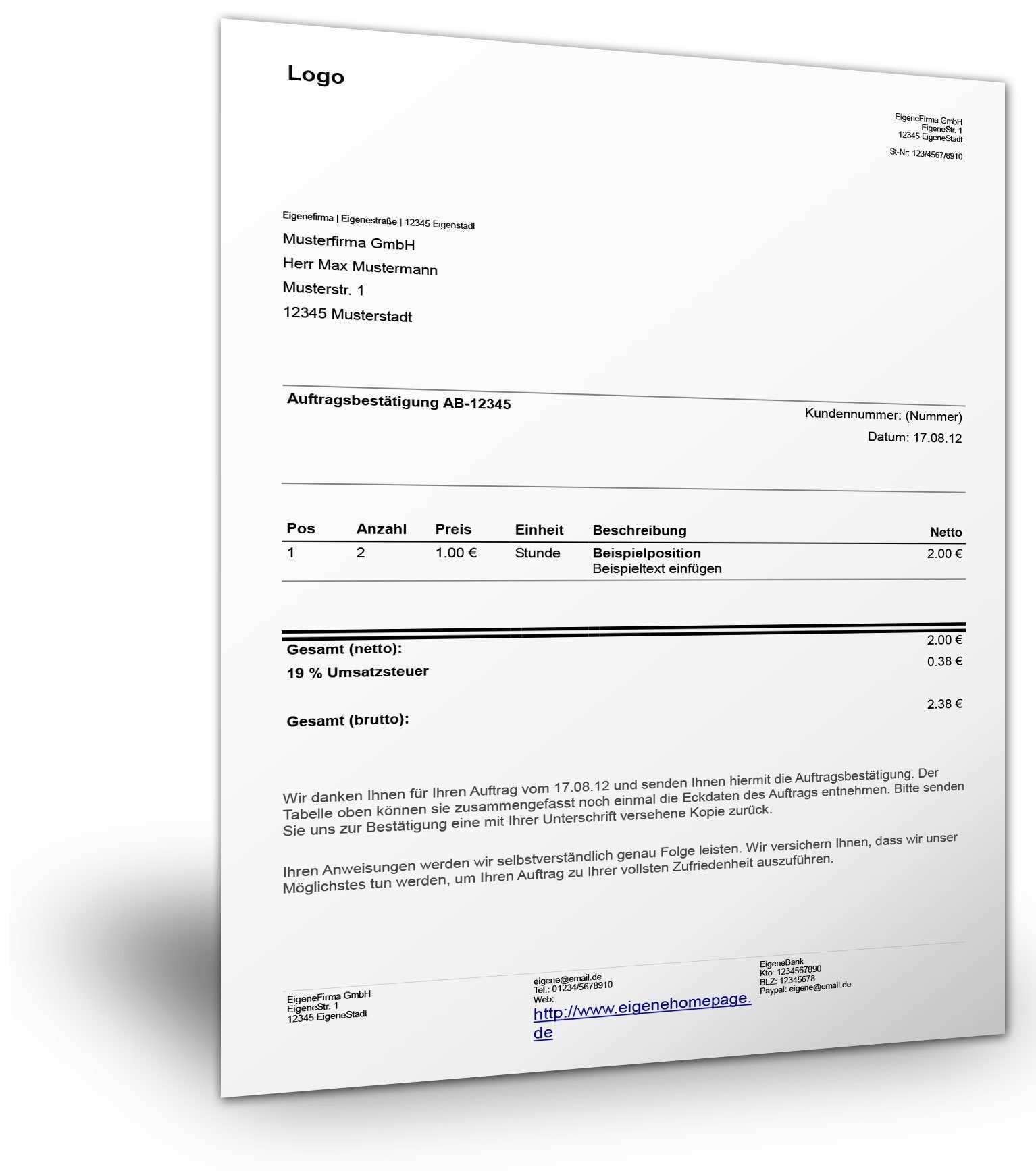 Die auftragsbestätigung ist nicht mehr als eine willenserklärung rechtlich bindend ist sie nicht. Sobald sie alle änderungen vorgenommen haben können sie das muster speichern und das schreiben ausdrucken. Die stehen für sie auch auf der internet seite ihres handbuchs für selbstständige und unternehmer bereit. Herzlichen dank für ihren auftrag vom 14 11 2016.