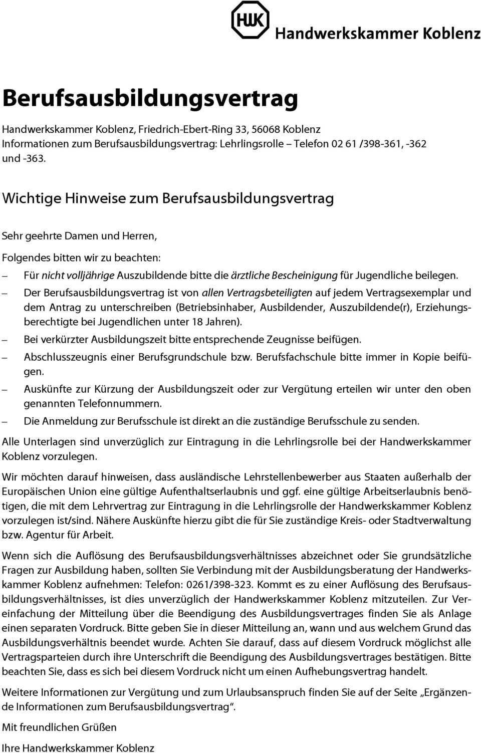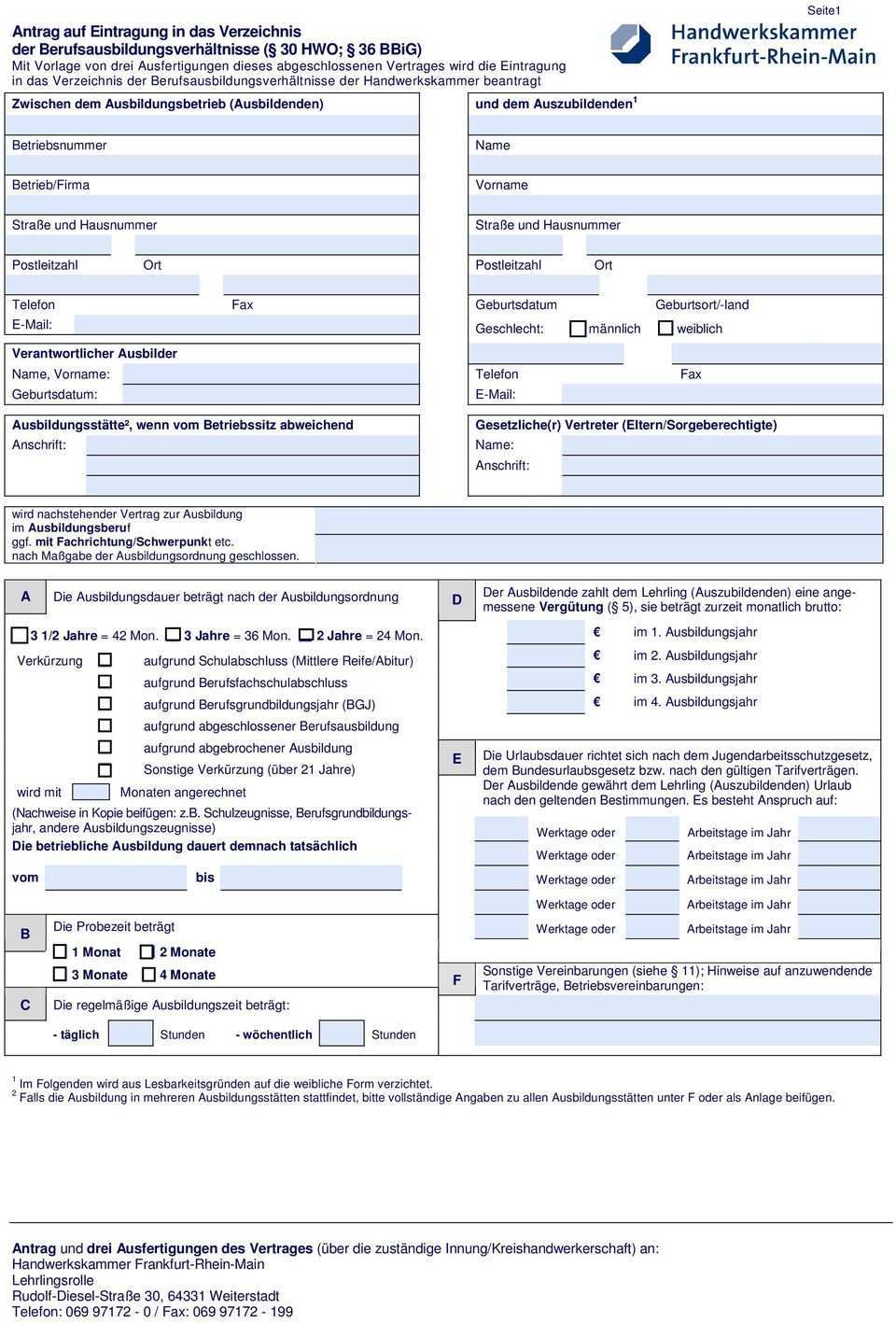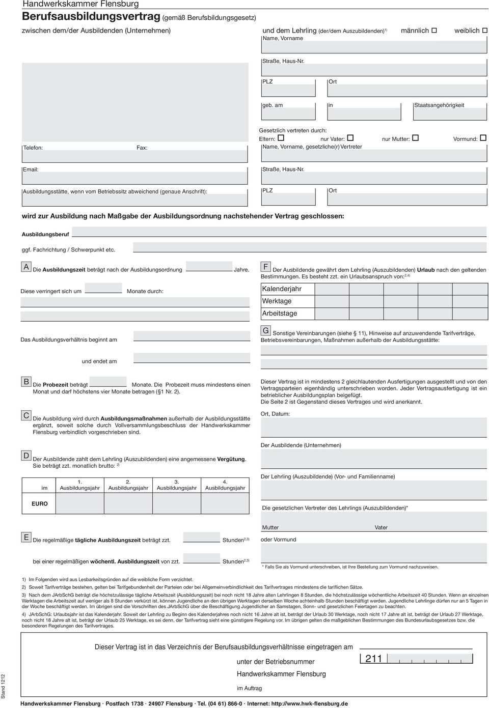 Siehe beschriftung am linken oberen seitenrand auf dem lehrvertrag senden sie uns nur das unterschriebene exemplar für die handwerkskammer seite 1 und 2. Eine haftung für den inhalt der muster kann mit ausnahme von fällen von grobem verschulden oder vorsatz nicht übernommen werden. Hier finden sie wichtige downloads und formulare aus dem bereich der berufsausbildung. Der entsprechende ausbilder muss nur noch ausgewählt werden.