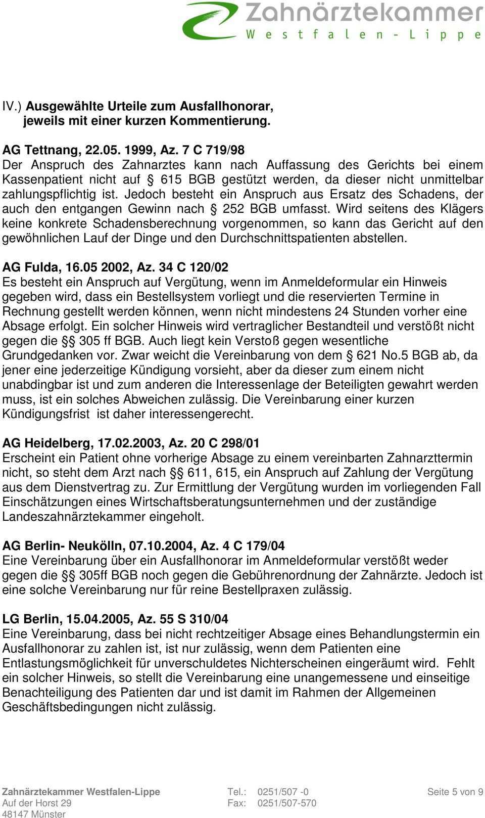 Falls eine pauschale vereinbart wird muss sie angemessen sein und sich an den durchschnittlichen einnahmen des arztes während der dauer des vereinbarten termins orientieren. Kann der arzt die zeit auf diese weise nicht nutzen und kann er dies nachweisen steht ihm unter umständen ein ausfallhonorar in voller höhe zu. Landgericht karlsruhe urteil vom 31 märz 1999 az. Mit der briefvorlage hilft ihnen ihr ausfallhonorar einzufordern.