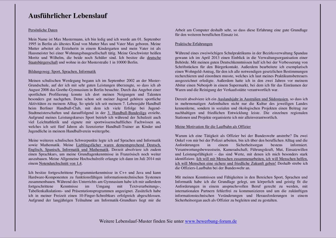 Ausfuehrlicher lebenslauf muster gesucht. Der gängigste bereich in dem ein ausführlicher lebenslauf in aufsatzform verlangt wird ist die bewerbung für ein stipendium. Der lebenslauf sollte auch ausformuliert alle wichtigen daten wie anfangs und enddatum einer beschäftigung beinhalten. Persönliche daten mein name ist max mustermann ich bin ledig und ich wurde am 01. Danksagungen formulieren bestattungen rolf stuttgart.