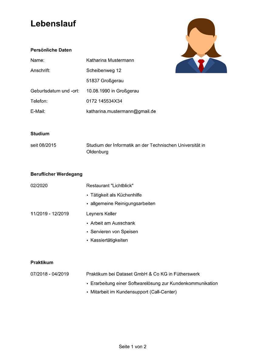 Ausfuehrlicher Lebenslauf Muster Gesucht