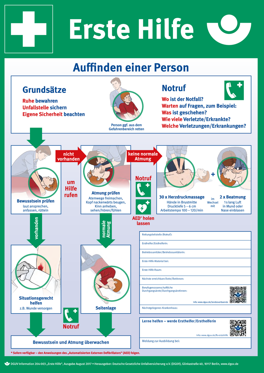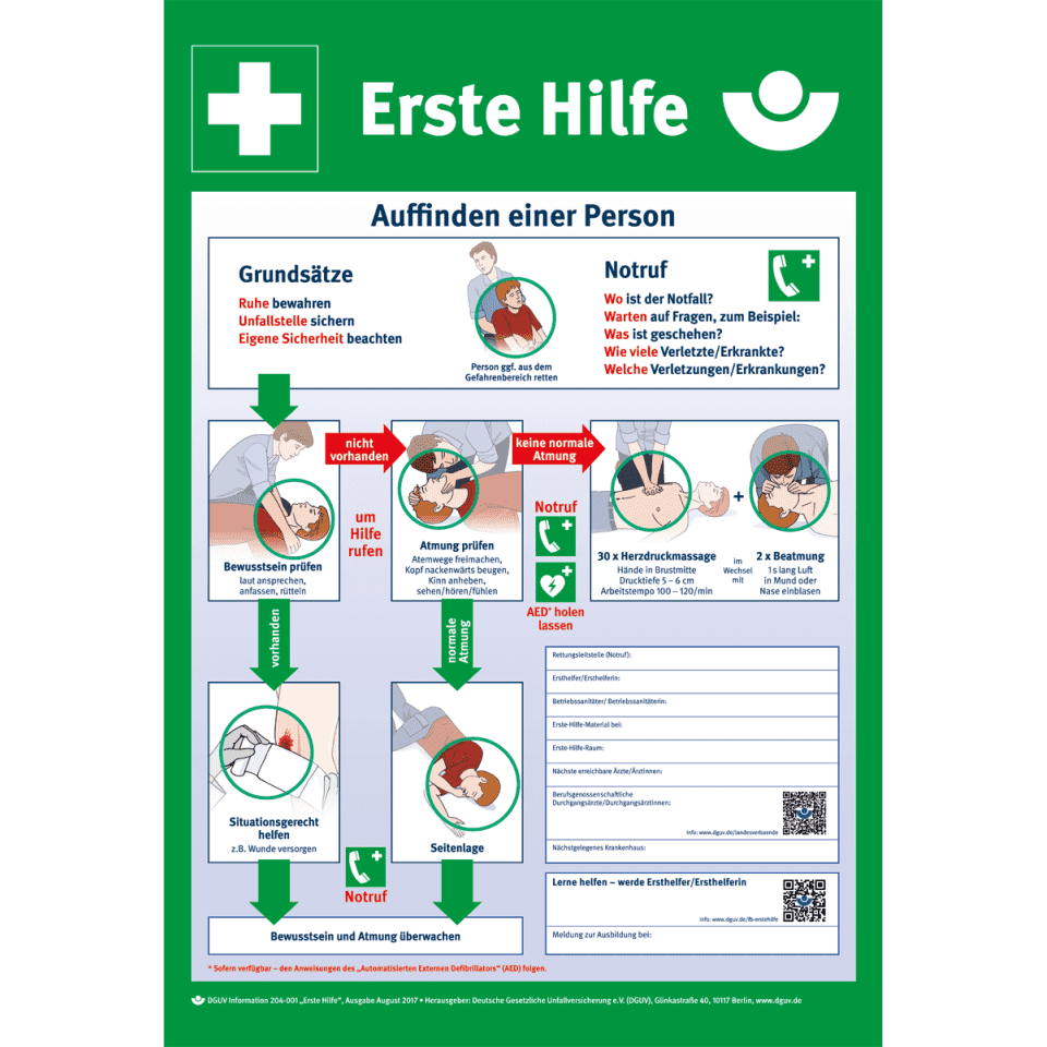 Dguv information 204 006 anleitung zur ersten hilfe. Erste hilfe plakat vorlage jetzt herunterladen und ein großartiges plakat in microsoft word oder publisher erstellen. Dguv information 204 020 verbandbuch link. Dazu können sie auf der vorlage sowohl bereits durchgeführte schulungen als auch geplante weiterbildungen erfassen.