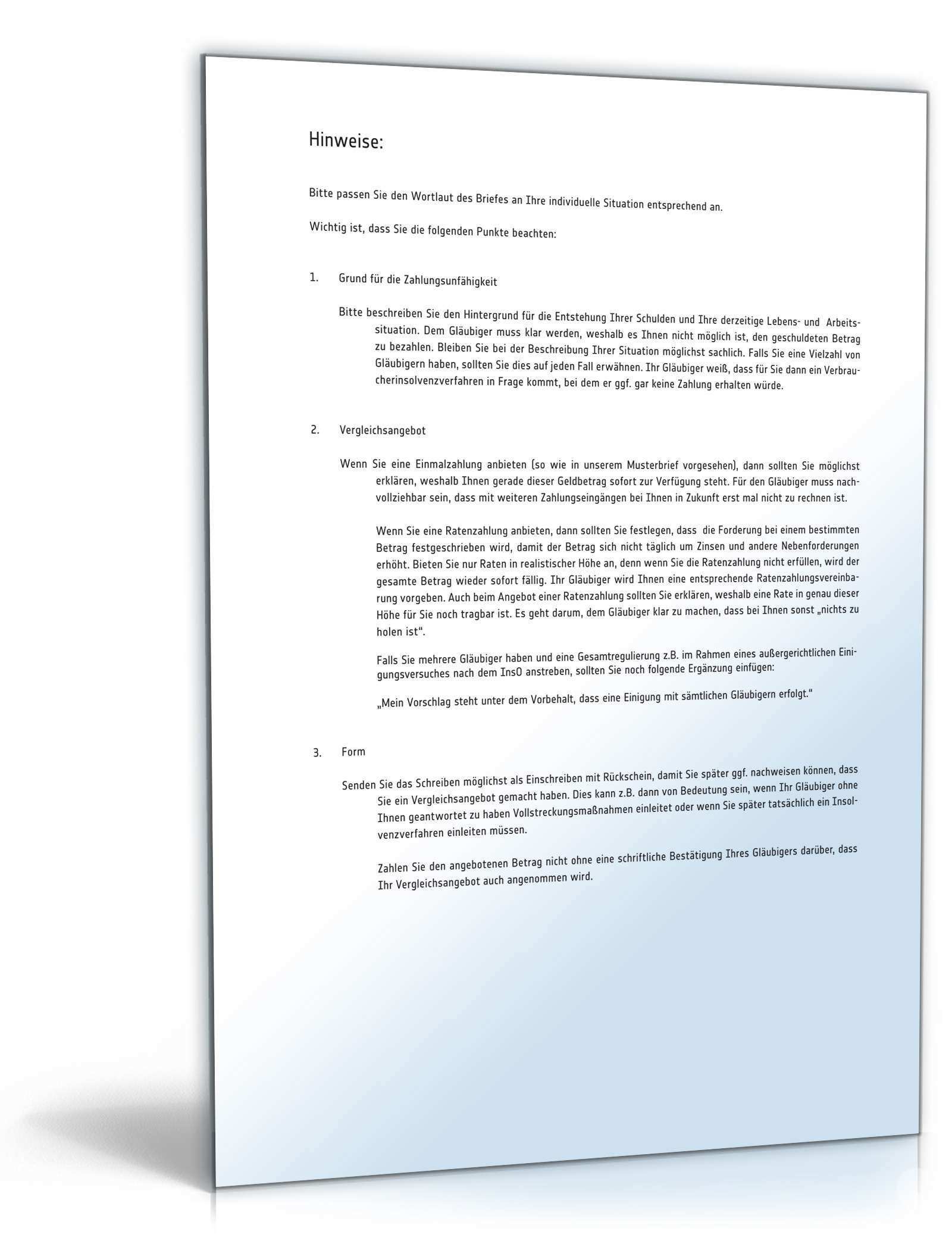 Aussergerichtliche einigung muster. Im folgenden können sie unsere vorlage für einen vergleich mit den gläubigern herunterladen. Textbaustein ratenzahlungsklausel muster 3 3. Nullplan als muster nur der ersten orientierung dienen kann. Vorteile einer außergerichtlichen einigung.