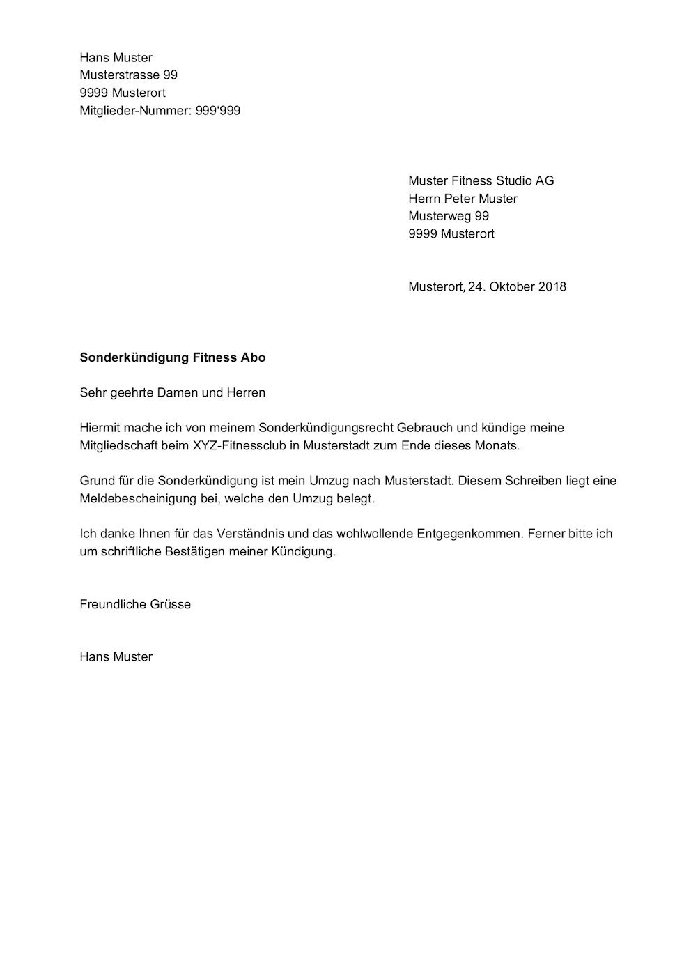 Wichtig ist es aber dass du das kündigungsschreiben innerhalb einer angemessenen frist nach. Schnell und einfach in nur wenigen minuten erledigt. Wir haben für sie eine kostenlose vorlage sowie alle infos zur fristlosen kündigung ihres fitnessstudios zusammengetragen.