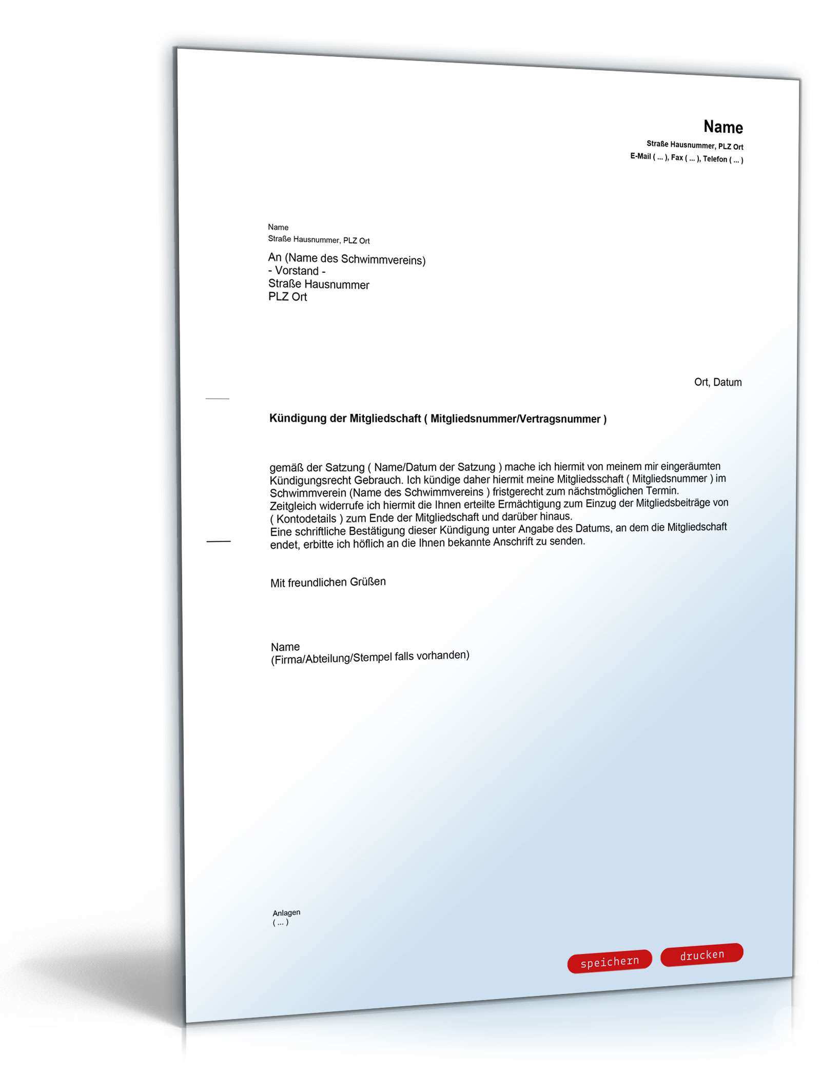 Sowohl verein als auch mitglied haben die möglichkeit den vertrag der meist für eine bestimmte vertragslaufzeit abgeschlossen wird und sich danach automatisch verlängert zu kündigen. Achten sie beim verfassen der kündigung insbesondere auf die vom verein angegebene kündigungsfrist weiterlesen. Muster macht es einfach. Schnell und einfach in nur wenigen minuten erledigt.