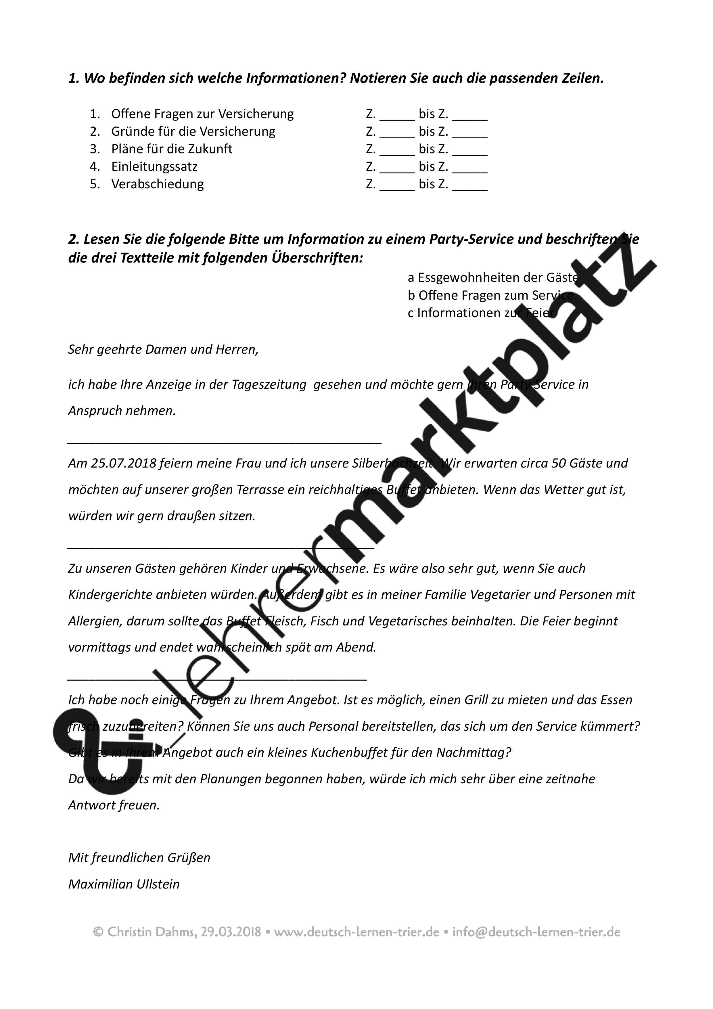 Schreiben sie ihre lösungen in den elektronischen antwortbogen. Sie suchen immer danach wie sie einen richtigen brief schreiben können. Sprachniveau etwa b2 c1. Beispiel 01 fehler in der satzstellung.