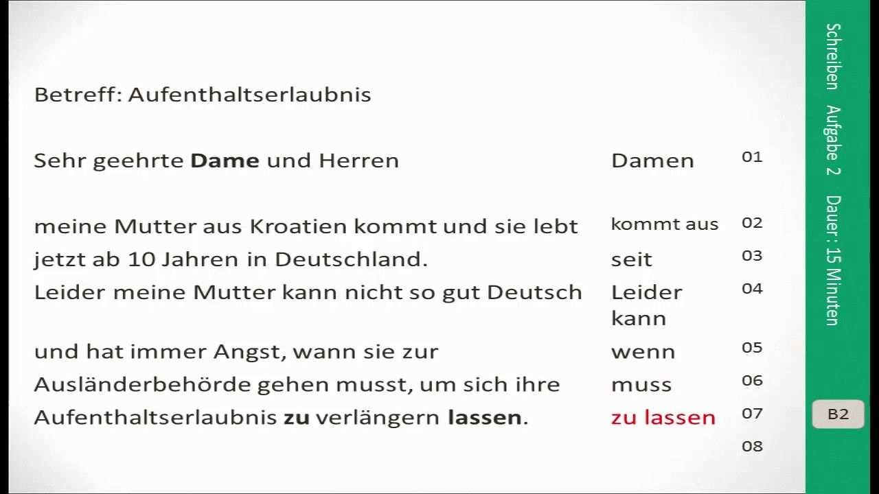Brief schreiben zur prüfung b2 beispiel und übungen. Natürlich ist es sehr wichtig dass sie die aufgaben des moduls schreiben wissen um diese zu trainieren und dann note 1 oder 2 zu bekommen. B2 prüfung beispiel pdf. Leseverstehen hörverstehen schriftlicher und mündlicher ausdruck.
