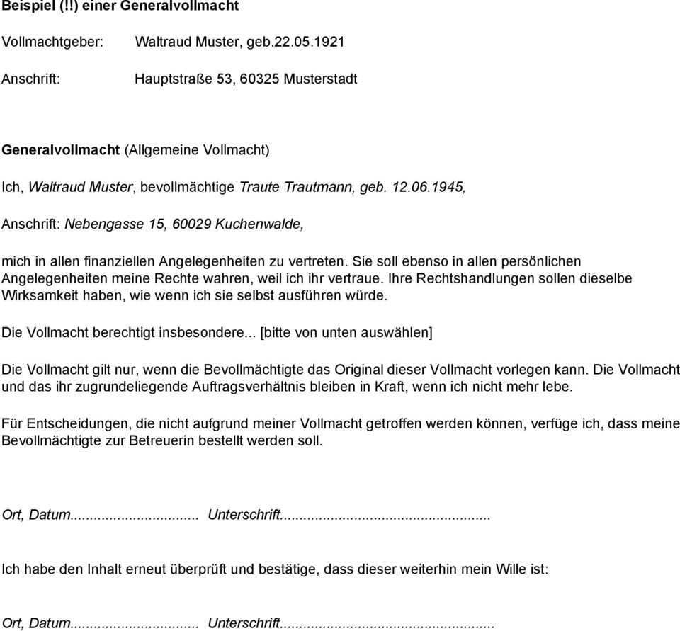 Im einzelnen gelten folgende umseitig wiedergegebene regelungen. Unter einer postmortalen vollmacht versteht man eine vertretungsmacht die erst nach dem tod des vollmachtgebers wirksam wird mit einer vollmacht räumt der vollmachtgeber dem bevollmächtigten das recht ein in seinem namen zu handeln die rechtsgeschäfte die der bevollmächtigte im rahmen dieser vollmacht tätigt wirken. Direkt eine verfügungsvollmacht und generalvollmacht beim klick auf den. Dazu muss er die bankvollmacht bei seiner sparkasse oder bank einreichen.