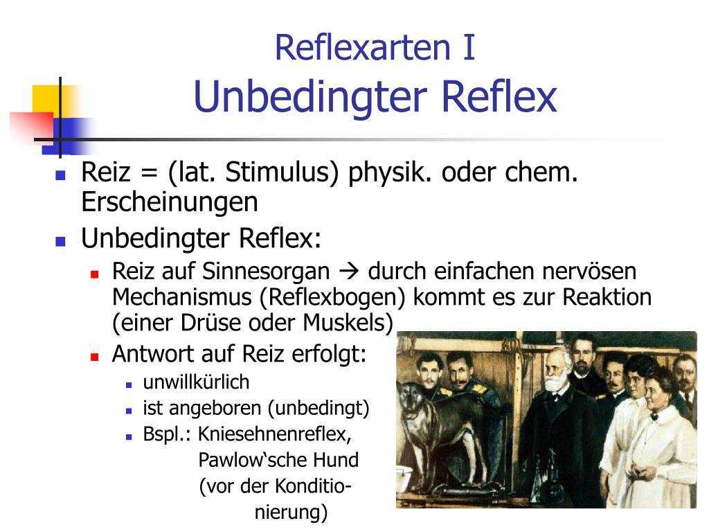 Ein unbedingter reflexe wäre z b. Dieser bewegt sich automatisch also reflexartig zum ball berechnet dessen flugbahn und bewegt sich zum landepunkt. Bedingter lidschlußreflex ein auf die hornhaut des geöffneten auges treffender luftstrahl löst einen angeborenen unbedingten schutzreflex abwehrreflex beider augen aus den lidschlußreflex.