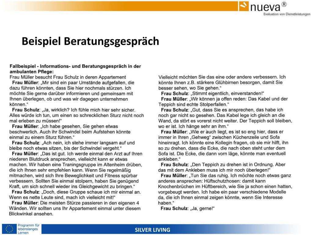 Er fühlt sich bedroht. Be trachtet man jedoch die vielfälti gen varianten von dem was unter dem begriff der beratung verstan den werden kann relativiert sich die aussagekraft dieser feststel lung. Weitere formulierungshilfen laut sgb xi finden sie in pdl konkret ambulant. Posi tives thematisieren anerken nung und wertschätzung aus drücken zielsetzungen unter stützen kompetenzen entde cken mögliche verstärker iden tifizieren begeisterung wecken.