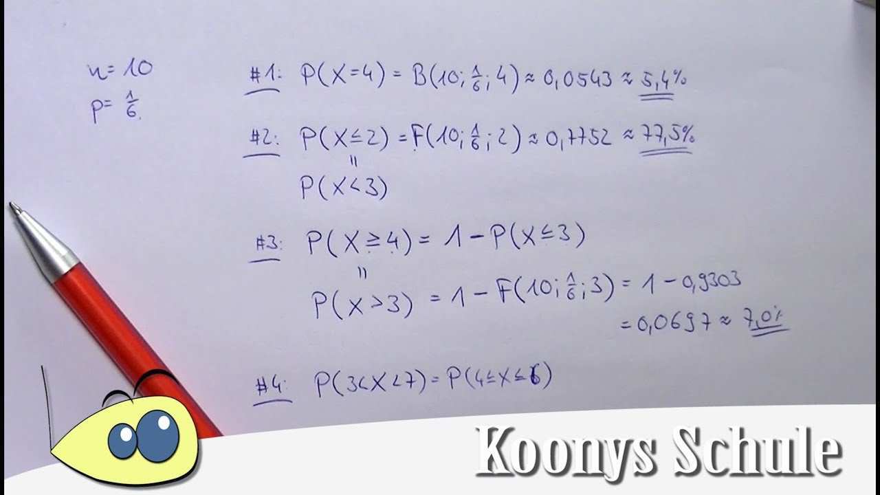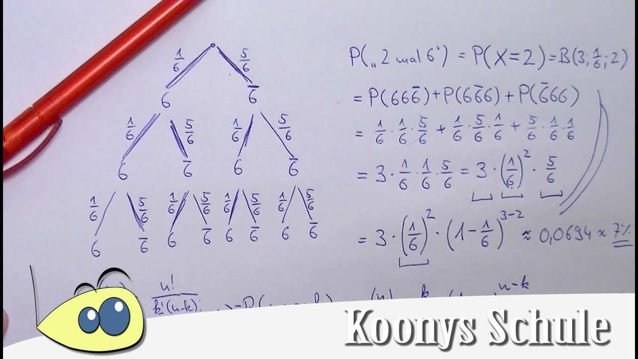 Ein würfel wird 6 mal geworfen. Zusammen ergibt das dann 1. Aus einer urne mit 1x roten kugel und 2x blauen kugel wird blind gezogen. 5 oder eben nicht 5 bzw.
