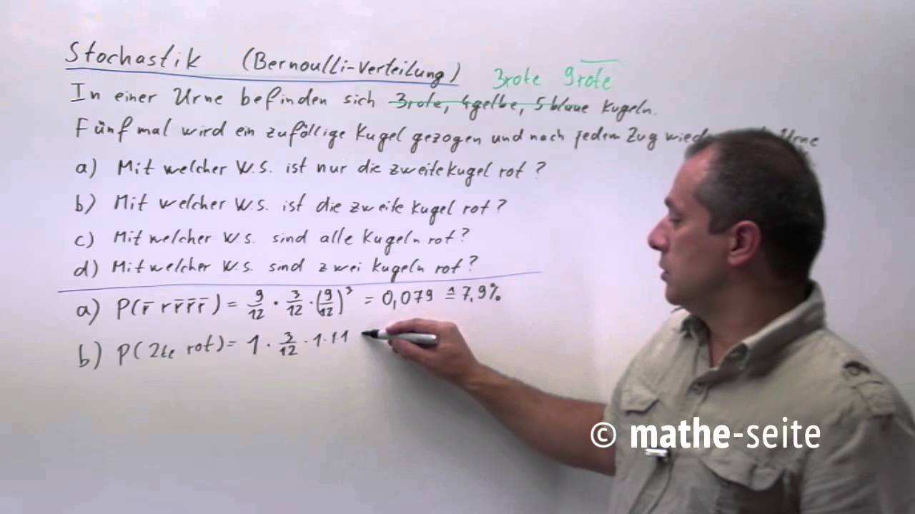 Ein beispiel für eine bernoulli kette der länge drei wäre das dreimalige ziehen mit zurücklegen aus einer urne mit nur schwarzen und weißen kugeln. Von einer bernoulli kette wird dann gesprochen wenn das bernoulli experiment vielfach wiederholt wird. 1 das ereignis tritt ein. Bei einer bernoulli kette mit der länge n mit der trefferwahrscheinlichkeit p ist die wahrscheinlichkeit höchstens r treffer.