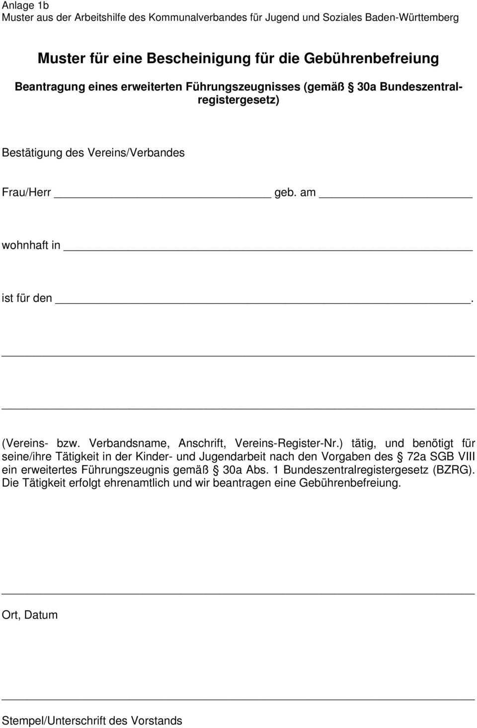 Gemäß 12 des gesetzes über kosten im bereich der justizverwaltung kann das bundesamt für justiz von der erhebung der gebühr für das führungszeugnis absehen wenn dies mit rücksicht auf die wirtschaftlichen verhältnisse. Musterbrief zur bescheinigung des ehrenamtlichen engagements. Microsoft word formular nachweis über ehrenamtliche tätigkeit docx author. Bestätigung für ehrenamtliche tätigkeit frau katja müller geboren am 17.